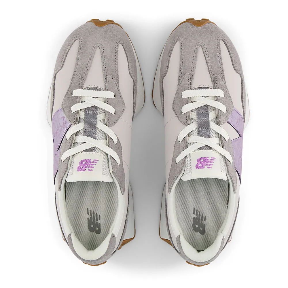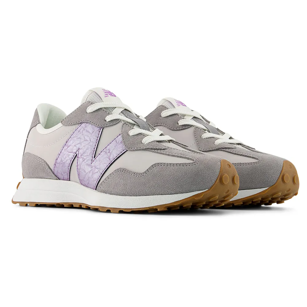 Детские кроссовки 327 от New Balance, украшенные увеличенным логотипом N, - это смелый взгляд на классический стиль.