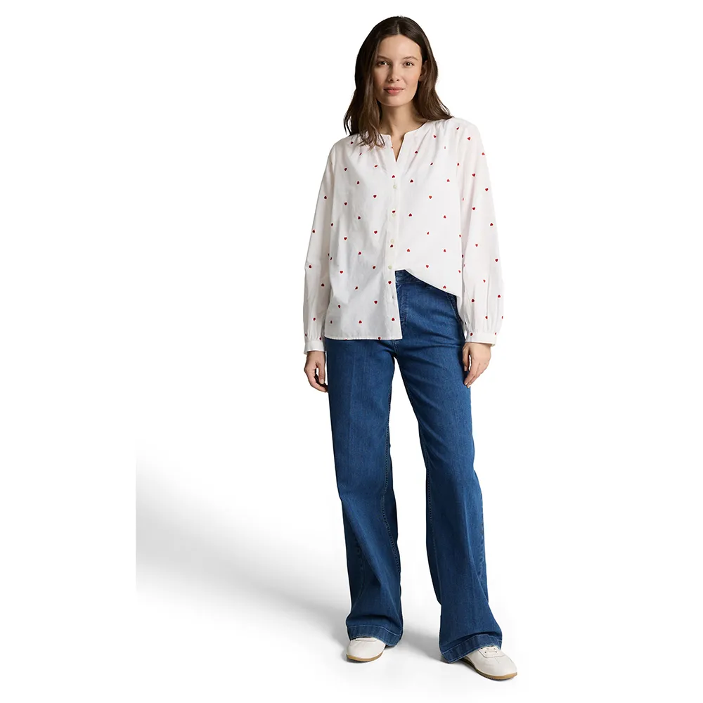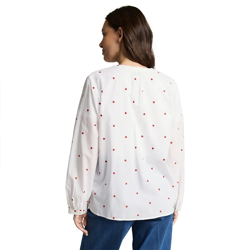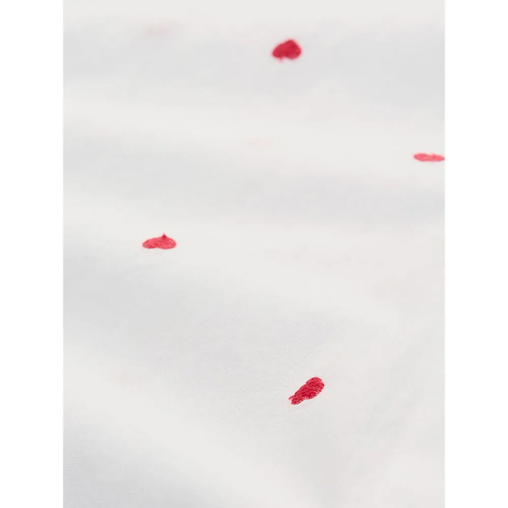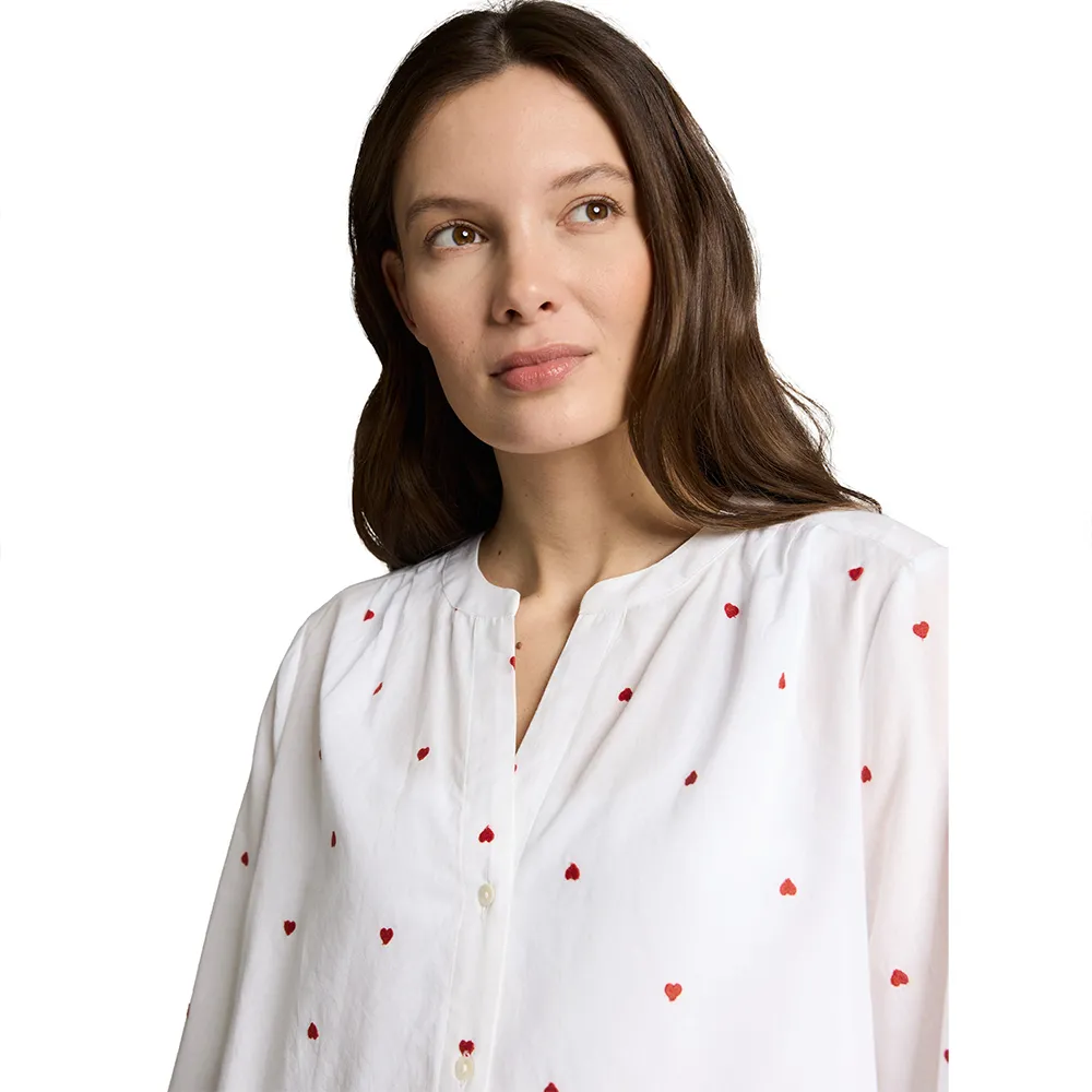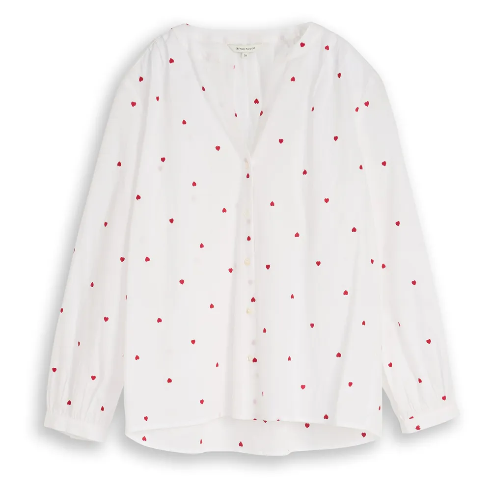 Блузка из хлопкового шамбре с вышивкой в виде сердечек по всей поверхности.