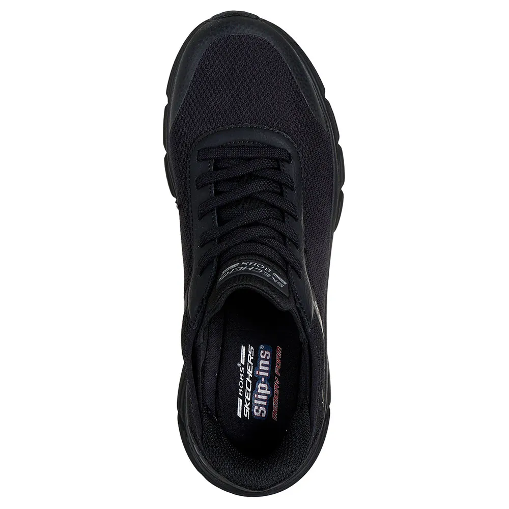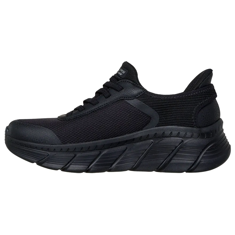 - Текстильный верх в силуэте Linear Force - Амортизирующая стелька Skechers Memory Foam - Heel Pillow обеспечивает надежную фиксацию пятки - Система надевания Slip-Ins без помощи рук - Эластичные шнурки No Tie Fit для дополнительного удобства - Веганская конструкция, пригодная для машинной стирки - Подошва B Flex Hi для гибкого сцепления - Повседневная обувь подразделения BOBS Sport - Логотип Skechers