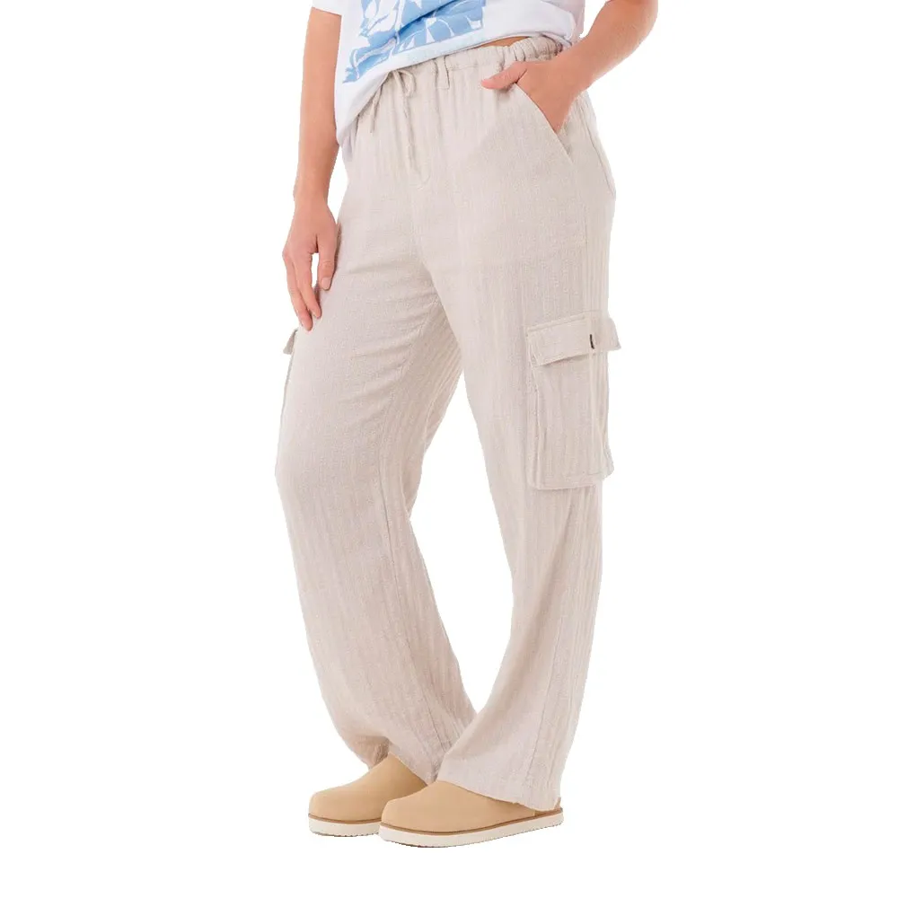 Свободные и дышащие, брюки Oceanic Textured Pant изготовлены из мягкой смеси хлопка и льна с использованием смягчающей стирки. Они имеют регулируемый шнурок на талии, боковые карманы, металлическую отделку с логотипом и удобный силуэт для повседневного комфорта.