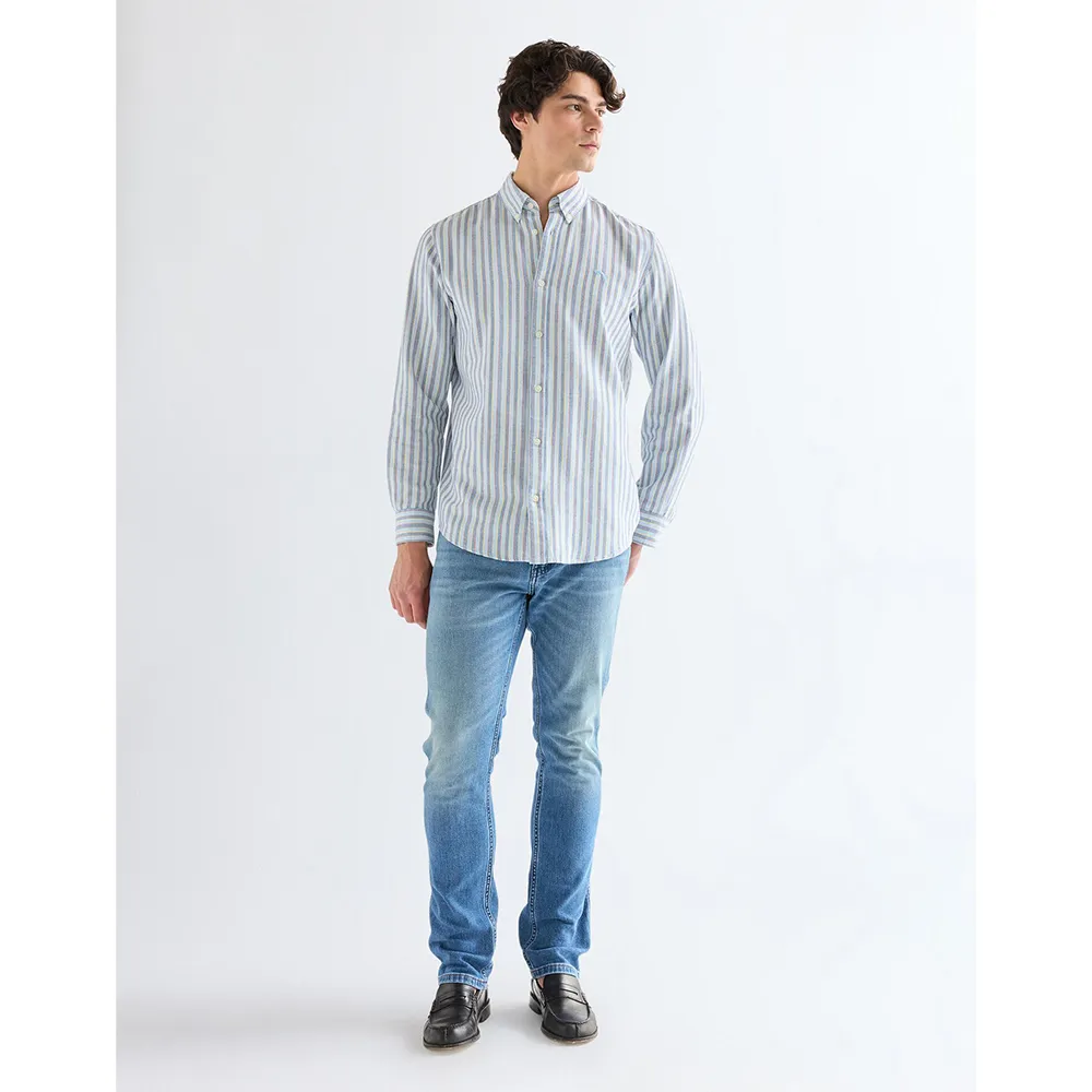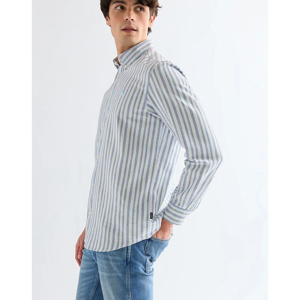 От рабочих дней до выходных, наша рубашка-оксфорд с длинными рукавами в полоску станет стильным дополнением вашего гардероба.