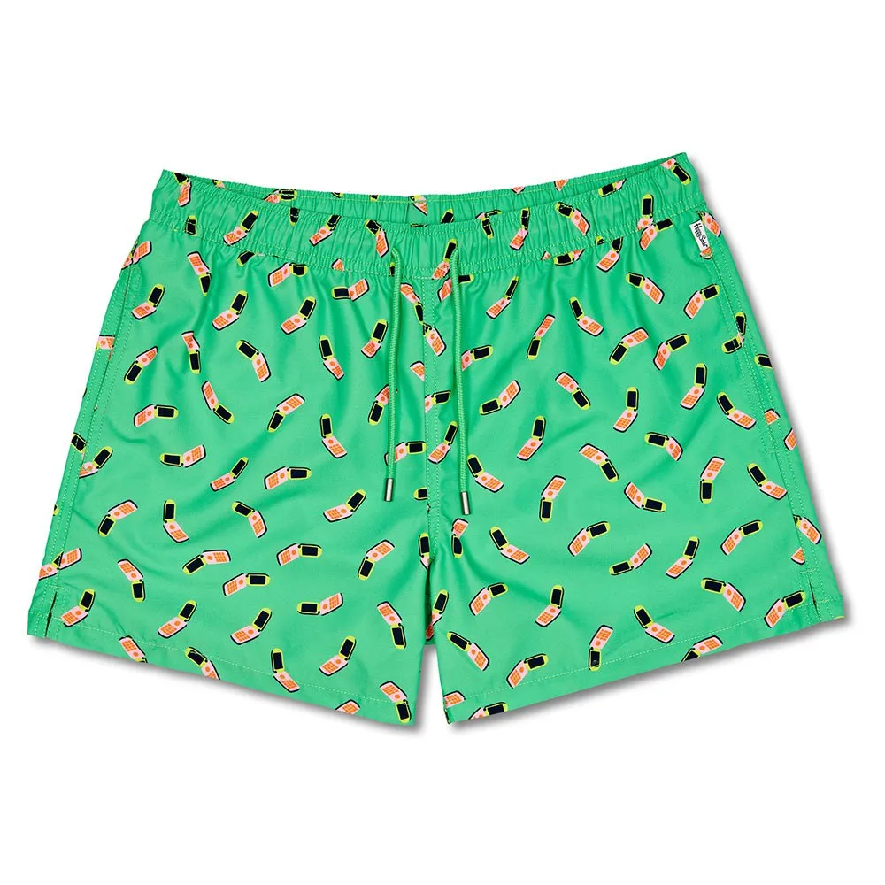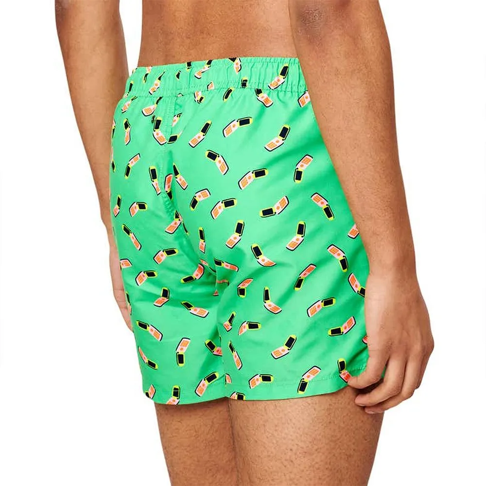 Купальник с необычным принтом, который улучшит ваш образ у бассейна или на пляже благодаря мягкой ткани. Самые модные купальники на данный момент - Happy Socks! Эти купальники очень популярны благодаря оригинальным принтам и высокому качеству. Боковые карманы, эластичный пояс, вентиляционные отверстия и сетчатая подкладка. Красочный купальник в стиле мобильного телефона «Позвони мне, может быть» на фисташково-зеленом фоне.