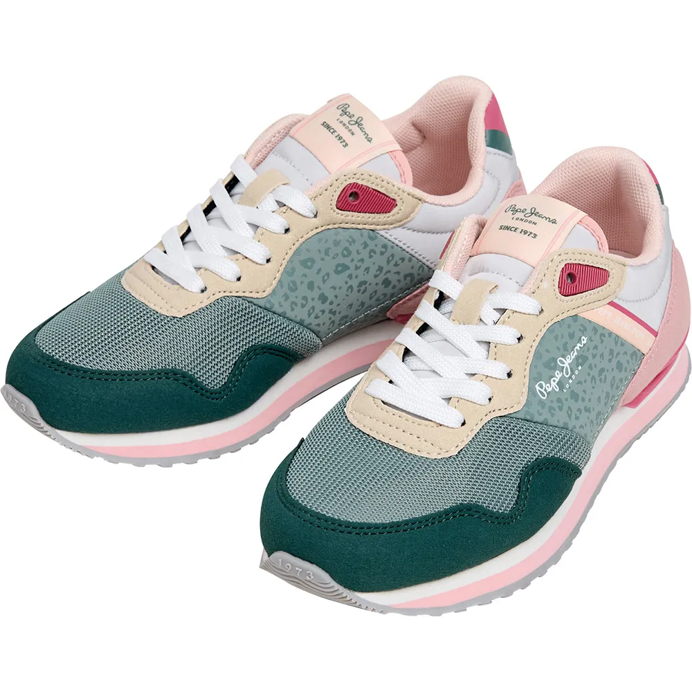 Кроссовки London Chic G для бега с сочетанием материалов и цветов, контрастной пяткой, удобной двухцветной промежуточной подошвой из ЭВА, модифицированной резиновой подошвой, цветным стабилизатором, культовой фирменной полосой с анималистическим принтом сбоку, термоформованной и съемной стелькой и классическим логотипом сбоку.