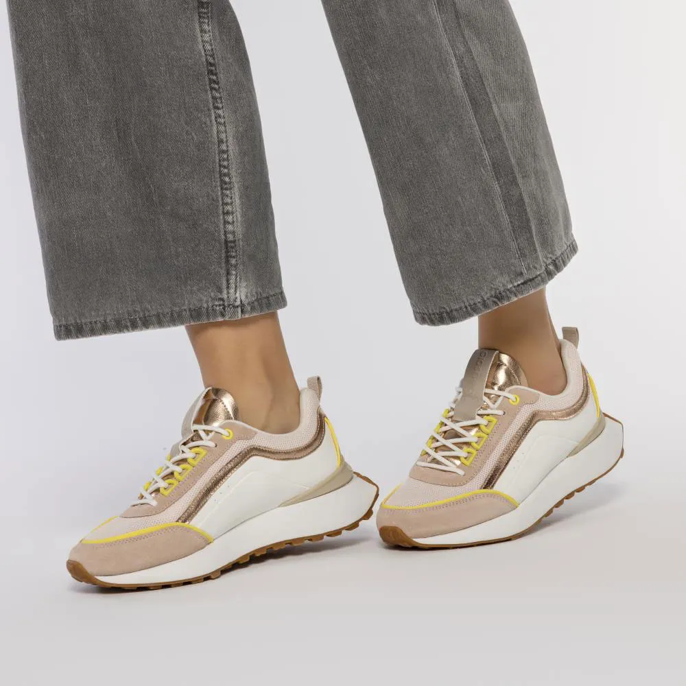 Очень легкие и удобные! Белые кроссовки с деталями телесного цвета, сочетающими кожу и техническую сетчатую ткань.