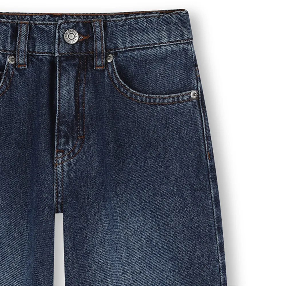 Джинсы свободного кроя, контрастная строчка и перекрученные боковые швы. Нашивка в виде крыла на задней части пояса. Состав: 100% хлопок. Инструкции по уходу: Машинная стирка в холодной воде, не отбеливать, не сушить в сушильной машине, гладить при низкой температуре, химчистка запрещена.