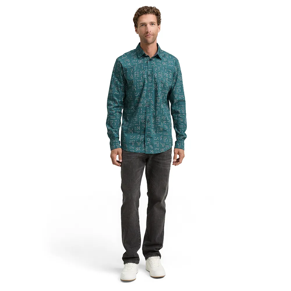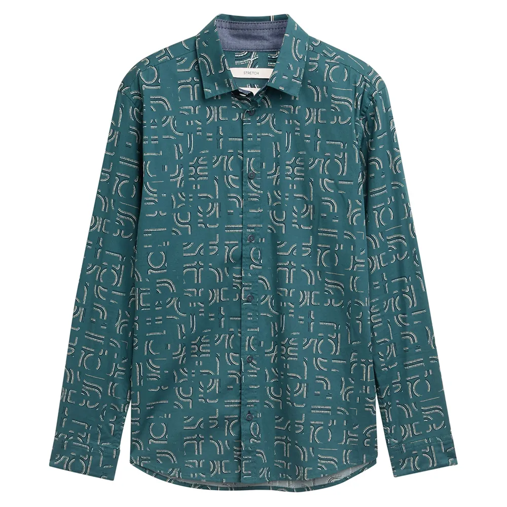 Рубашка с узором и эластичными вставками для большей свободы движений и комфортной посадки.