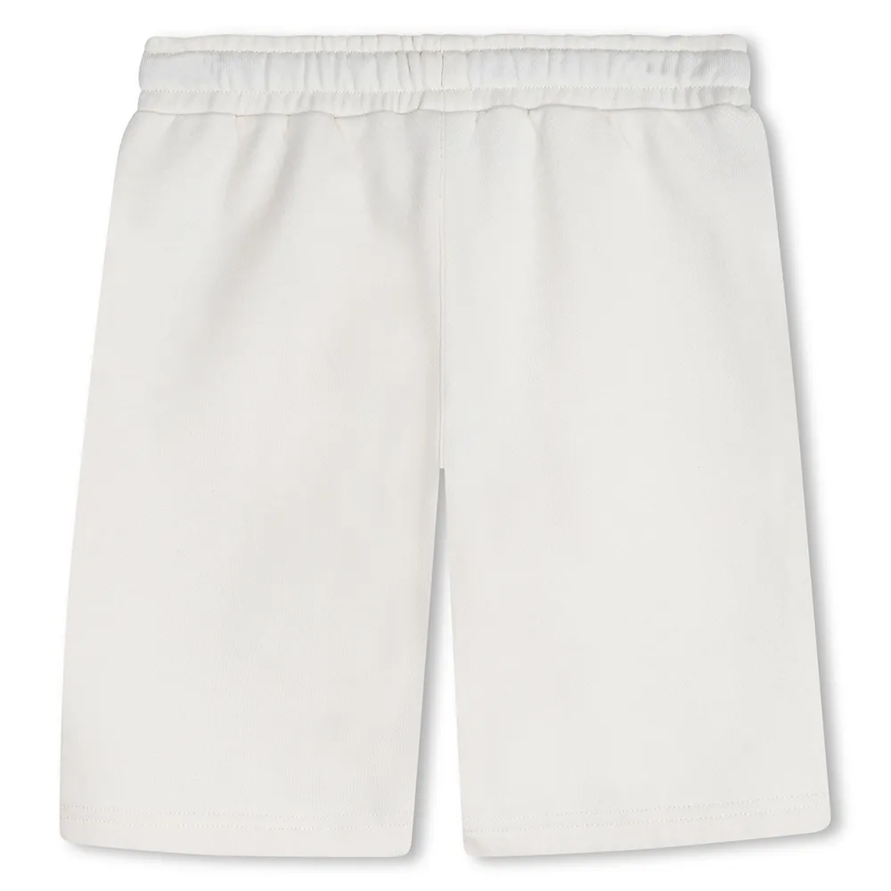 Шорты из французского махрового трикотажа: 80% органический хлопок / 20% полиэстер, эластичный пояс на шнурке, боковые карманы с кантом, принт на передней части. Состав: 80% хлопок, 20% полиэстер - Резинка: 95% хлопок, 5% эластан - Подкладка: 100% хлопок.
