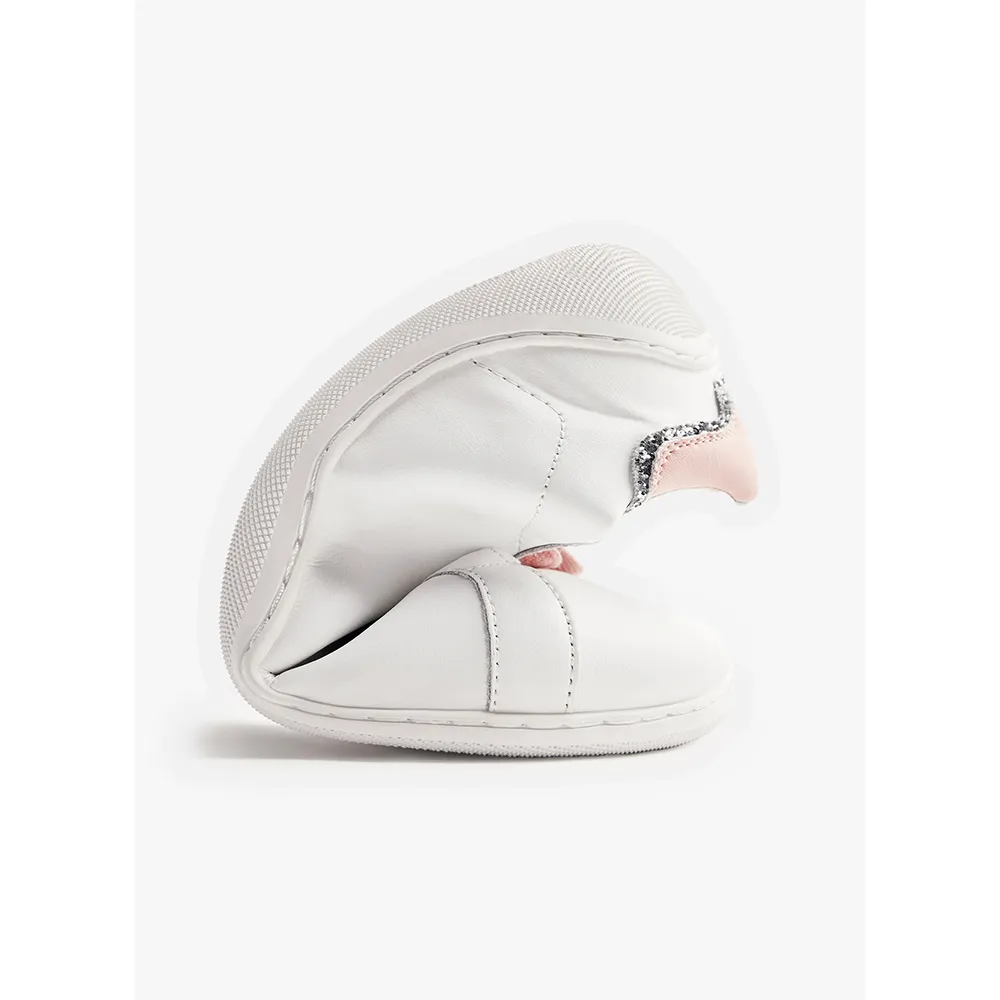 Кожаные кроссовки с цветными акцентами и блестящей отделкой.