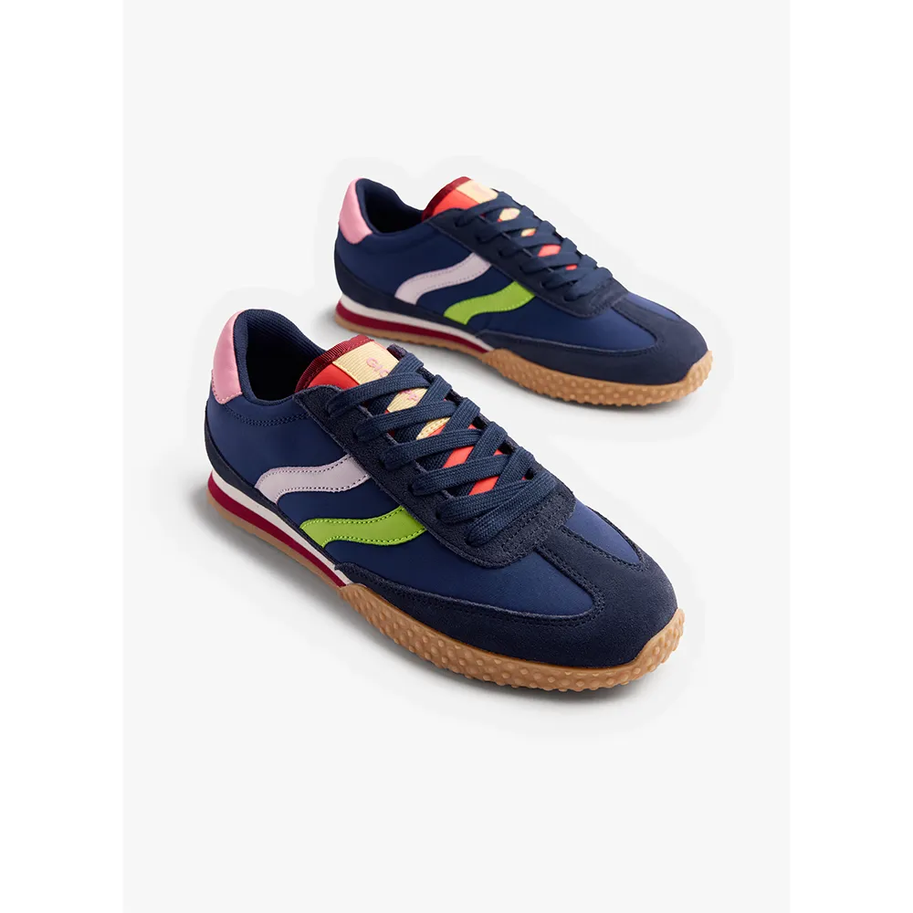 Кроссовки из замши и нейлона с цветными акцентами.