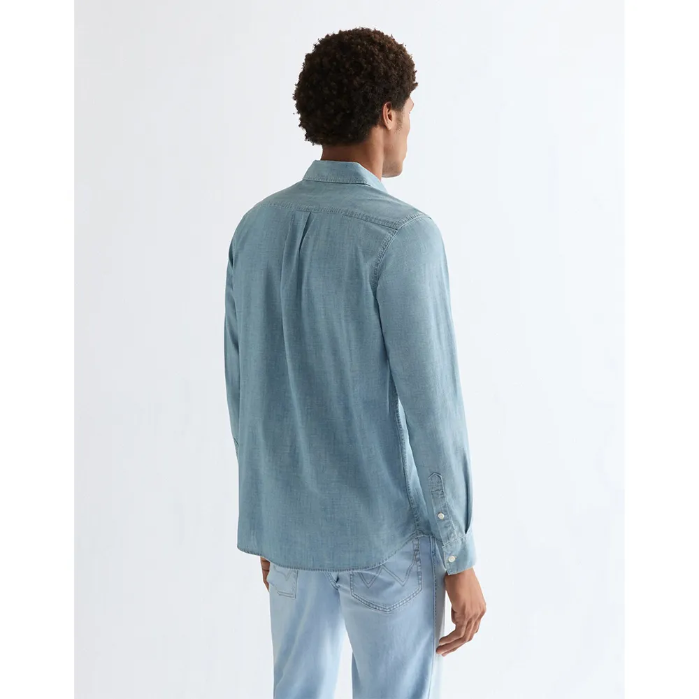Рубашка с длинными рукавами из шамбре - это незаменимый элемент гардероба, изготовленный из хлопчатобумажной ткани простого переплетения, легкой, воздушной и удобной для многослойной одежды.