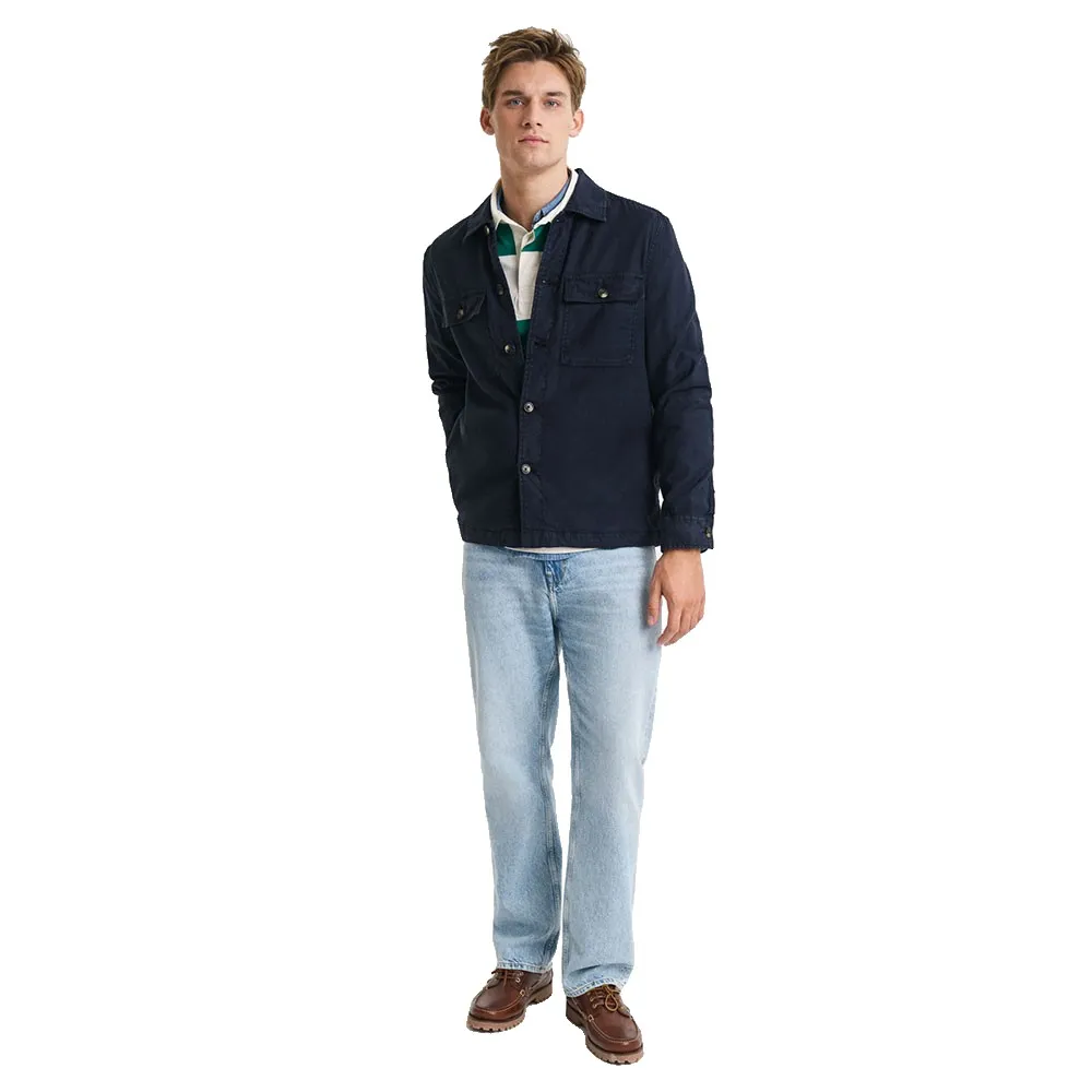 Эта рубашка-куртка GANT, изготовленная из комфортной смеси хлопка и льна с добавлением эластичных волокон, имеет стандартный крой и воротник-стойку.