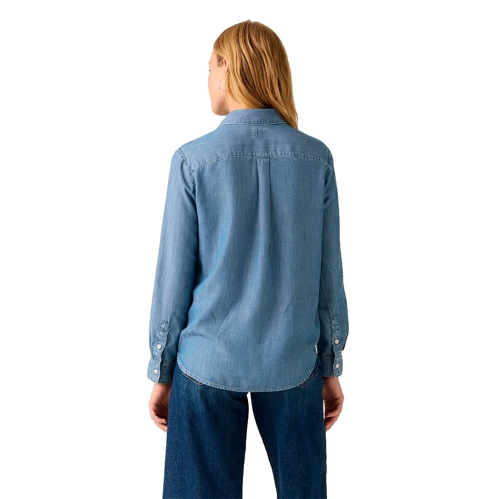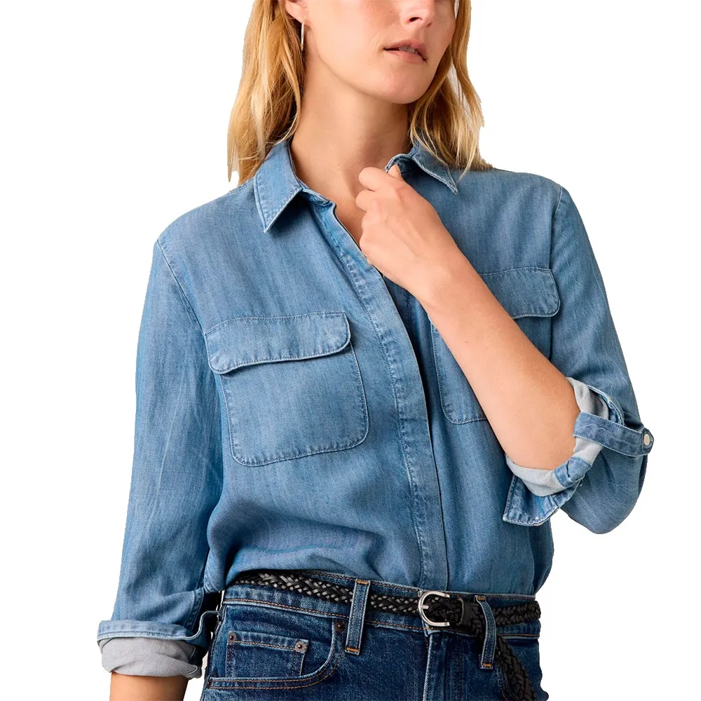 Мы разработали нашу рабочую рубашку Elaine с классической застежкой на пуговицы спереди, накладными карманами и свободным кроем для комфорта в течение всего дня.