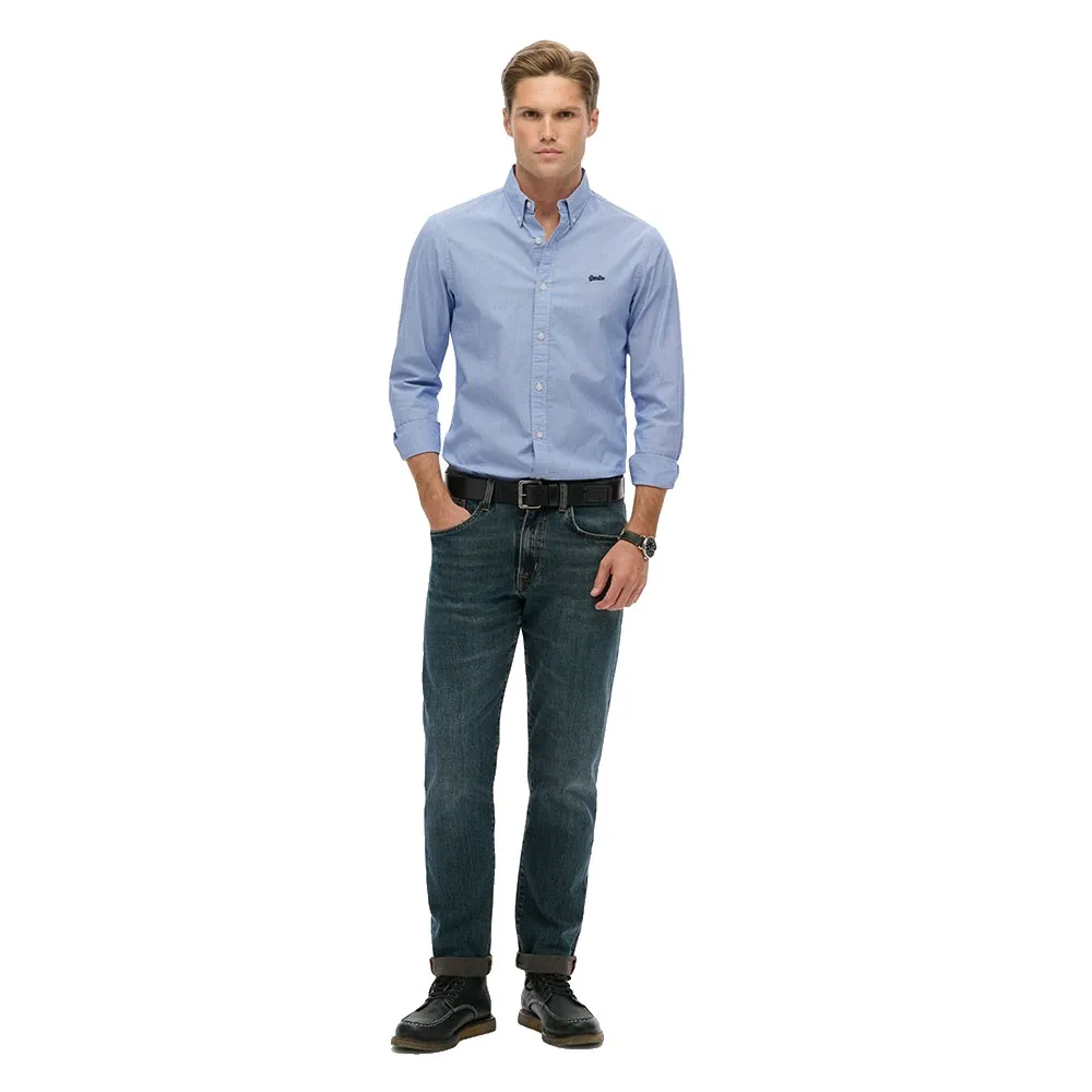 - Приталенный крой, обеспечивающий более плотную посадку по фигуре. - Воротник на пуговицах. - Манжеты на пуговицах. - Застежка на пуговицы. - Вышитый логотип на груди. - Нашивка Superdry на спине.