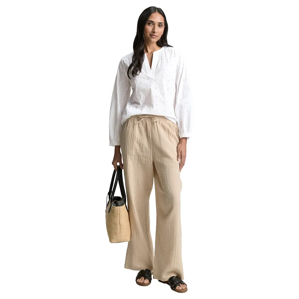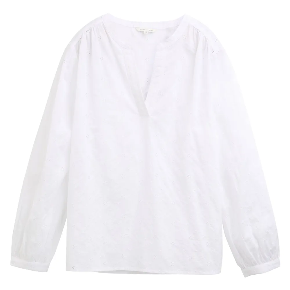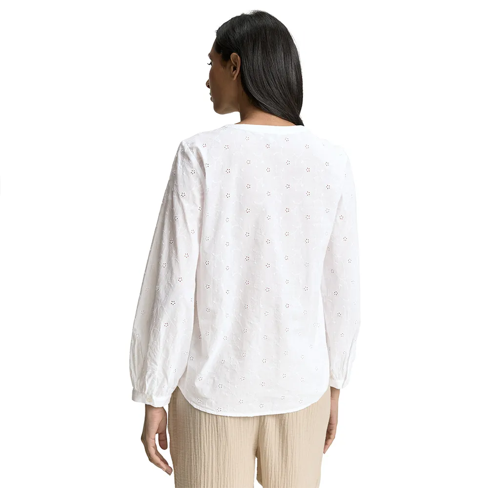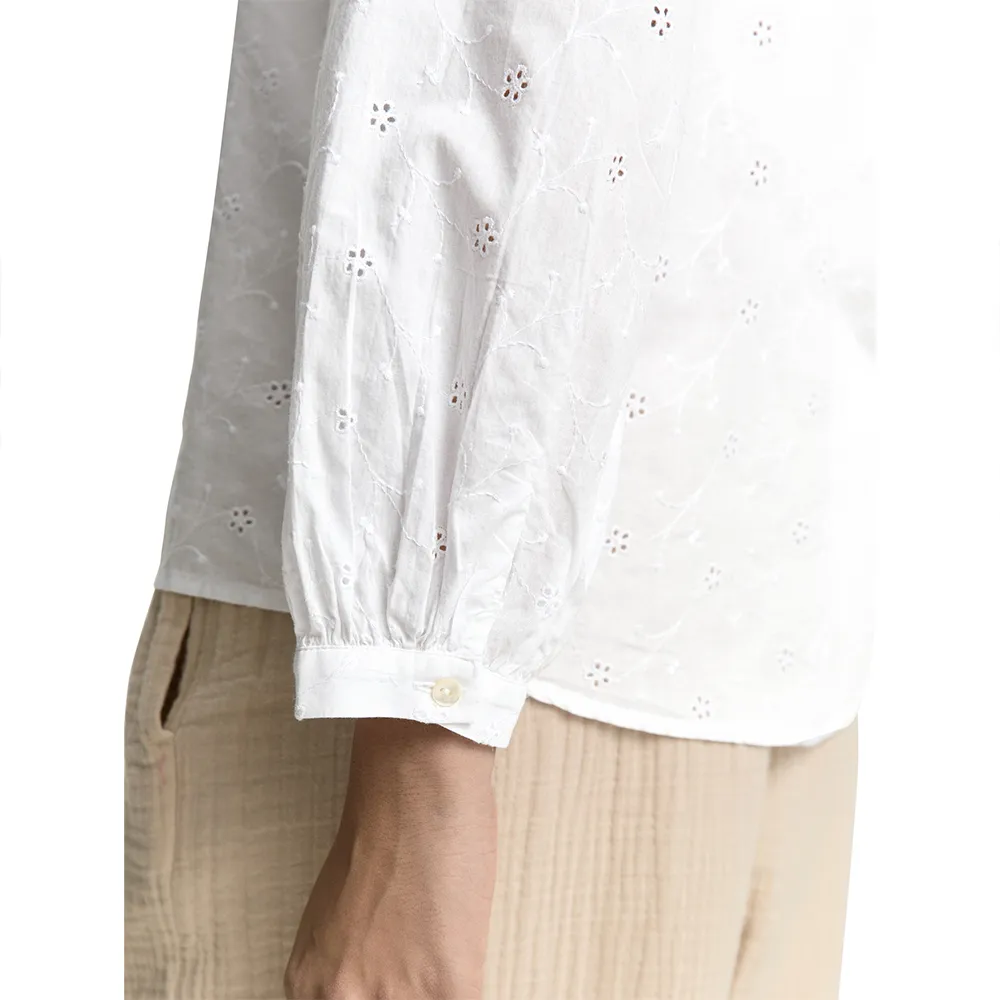 Хлопковая блузка с вышивкой и легкой сборкой на плечах.