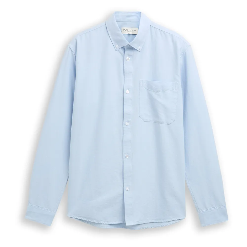 Рубашка из хлопка оксфордского кроя свободного кроя с накладным нагрудным карманом.