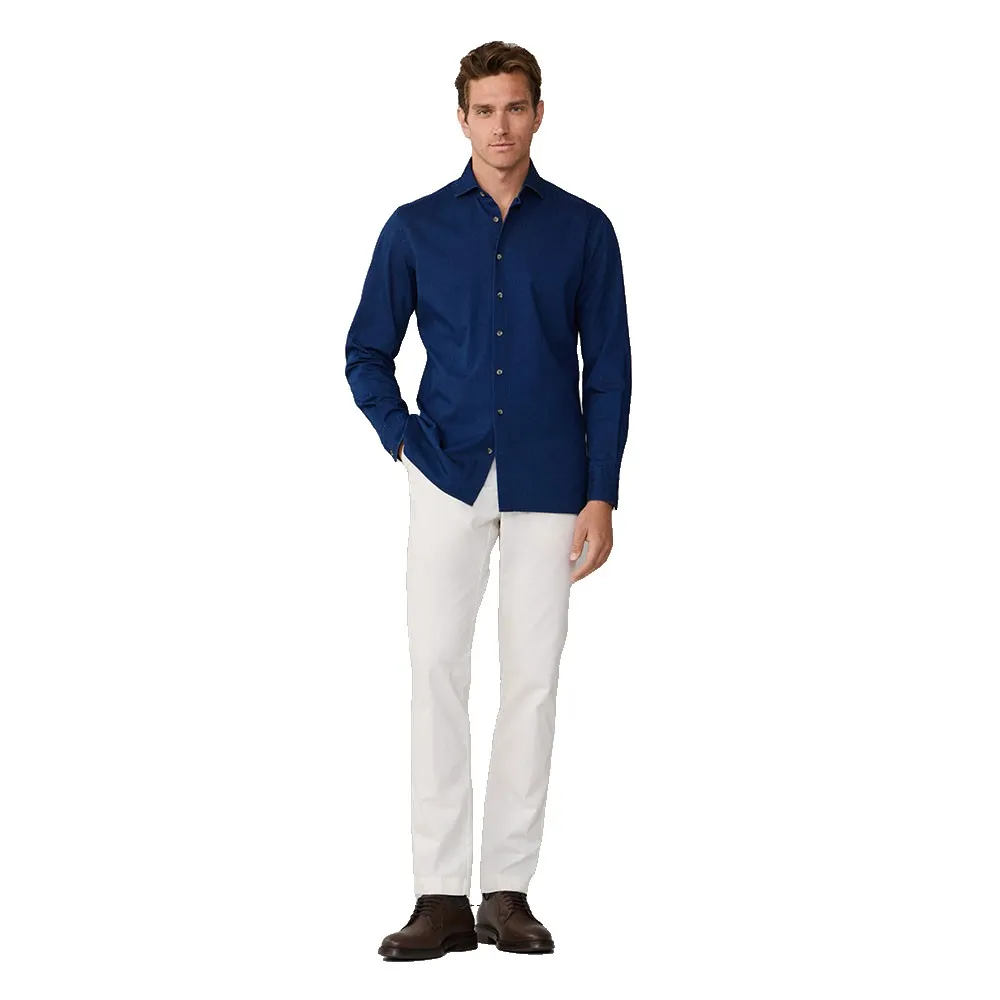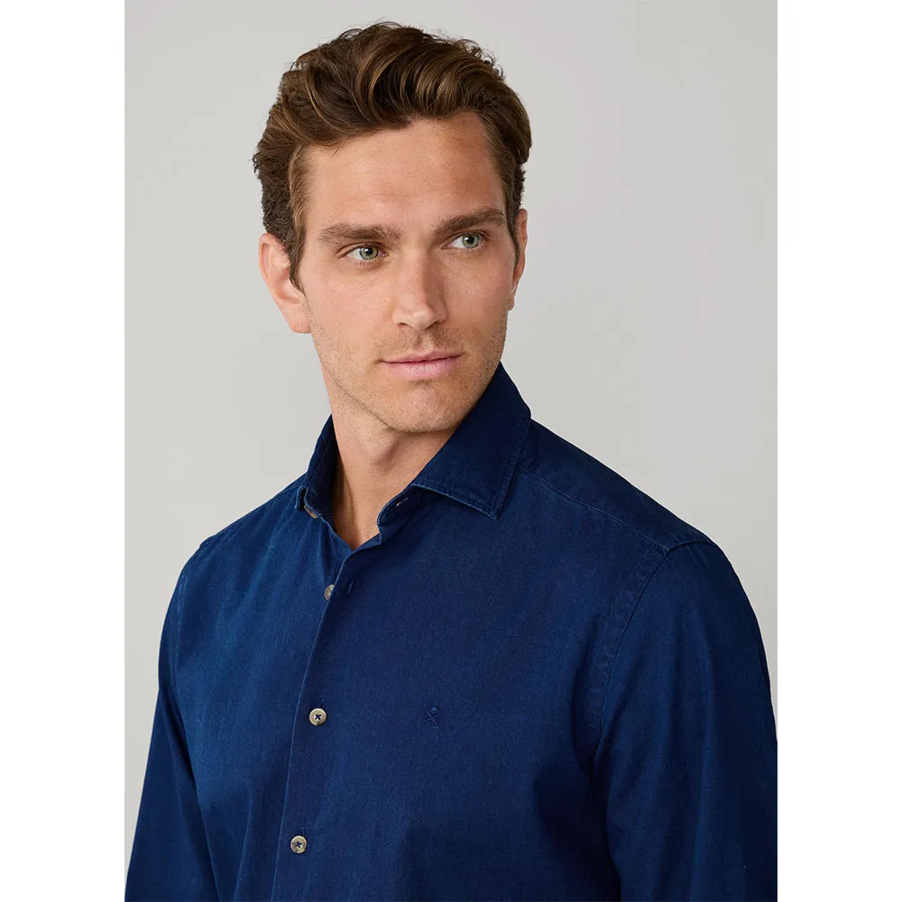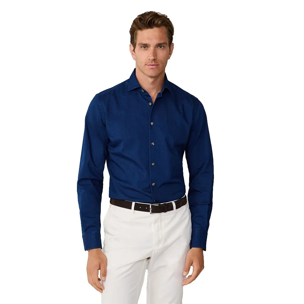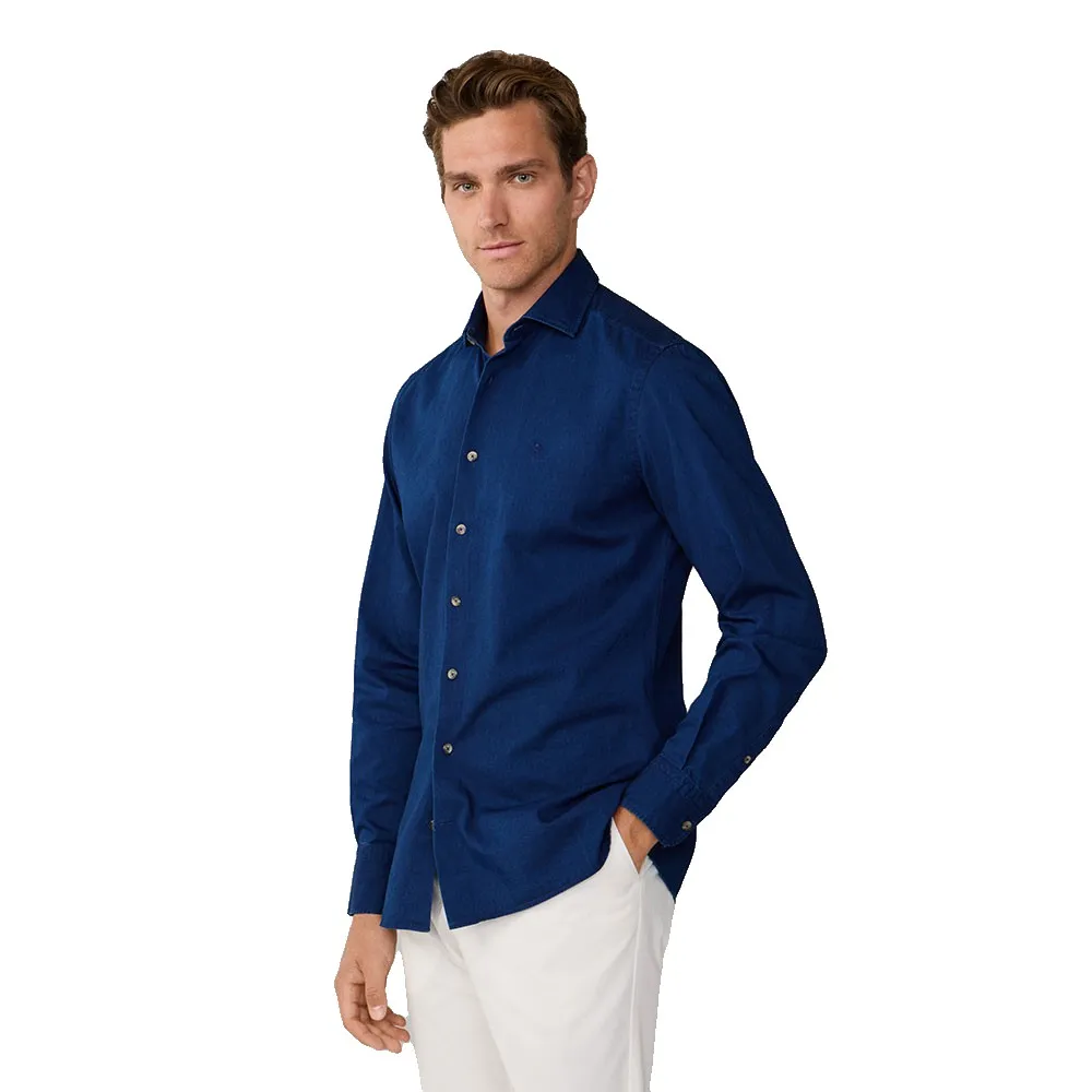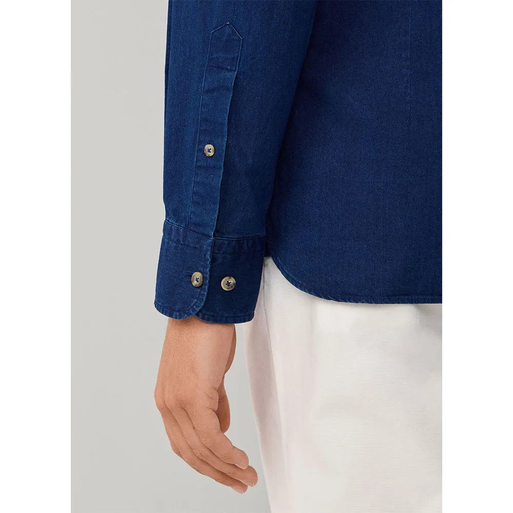 Элегантная джинсовая рубашка на пуговицах из тонкой саржи.