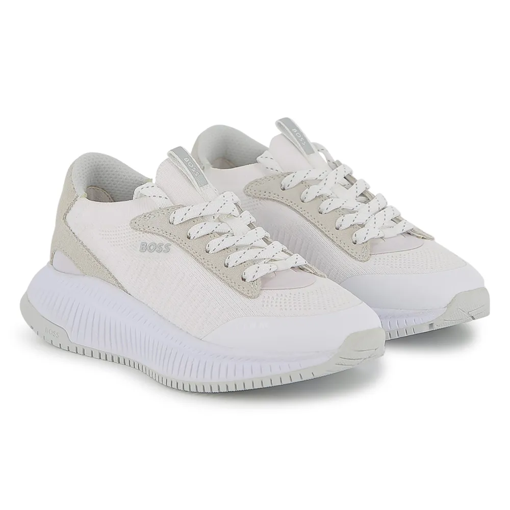Кроссовки-носки из текстиля и коровьей замши. Шнуровка. Тисненый логотип бренда сбоку и на язычке. Текстильная подкладка и стелька. Вдохновлены взрослой коллекцией TITANIUM. Минеральное дубление. Подошва из EVA. Состав: Стелька 100% текстиль, 100% текстиль - Отделка: 100% кожа - Подошва: 100% синтетика. Рекомендации по уходу: Машинная стирка в холодной воде - Не отбеливать - Не сушить в сушильной машине - Гладить при низкой температуре - Не подвергать химчистке