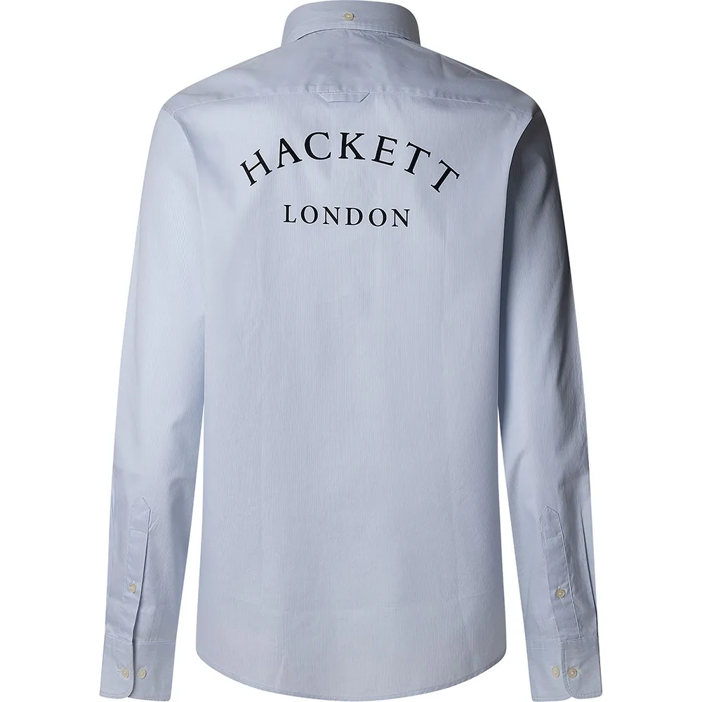 Эта элегантная полосатая рубашка-оксфорд с крупным принтом в виде цифры «1», декоративной окантовкой и большим принтом в винтажном спортивном стиле «Hackett London» на спине.