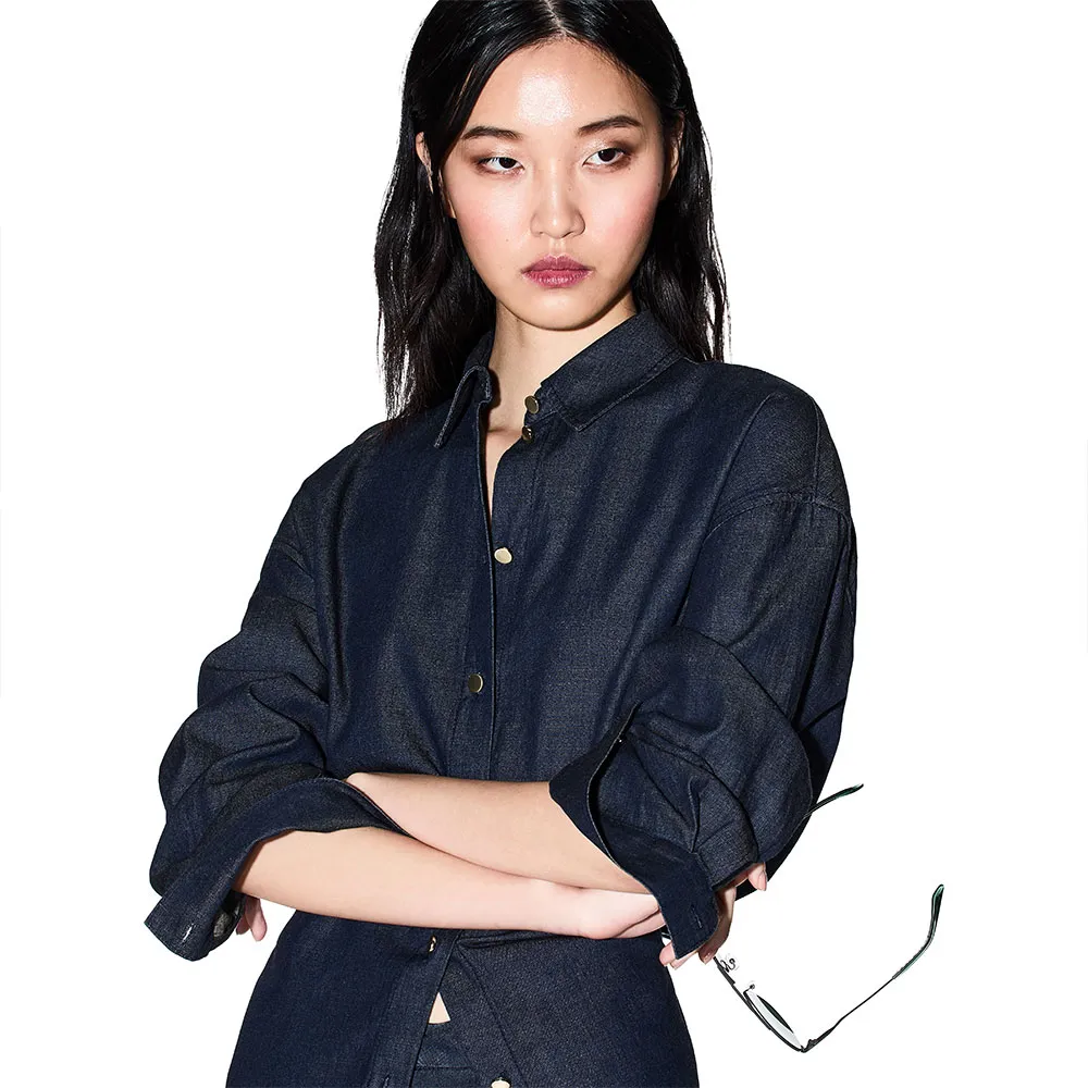 Рубашка свободного кроя с асимметричным низом.
