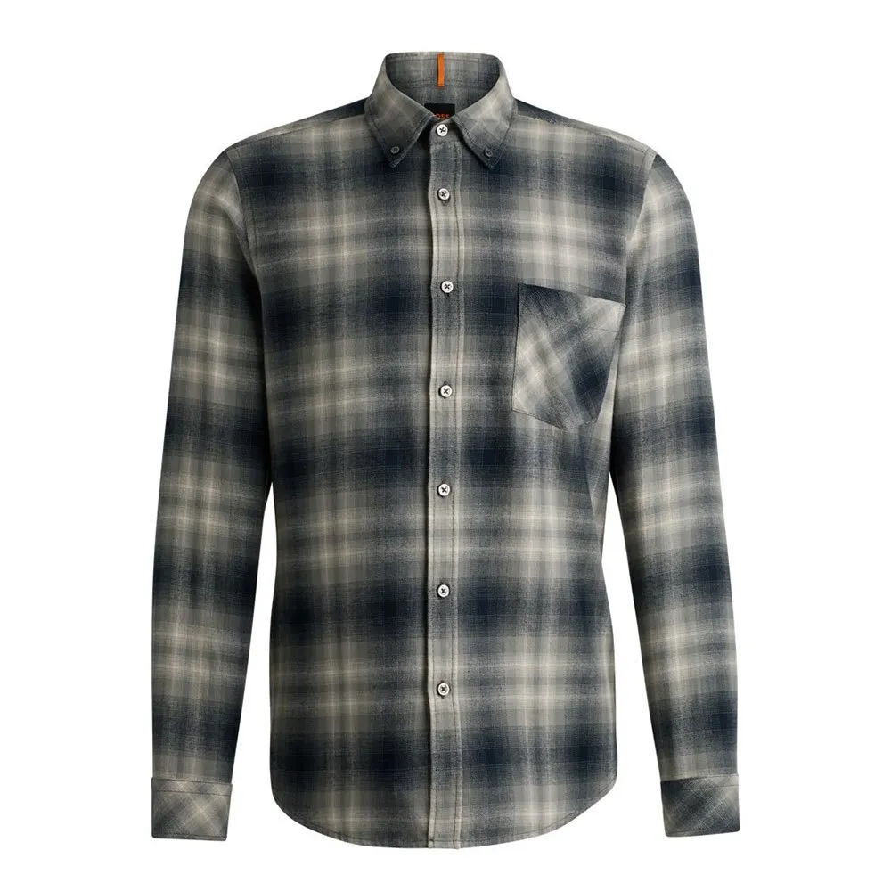 Рубашка прямого кроя с воротником на пуговицах от BOSS. Эта модель выполнена из мягкой фланели и имеет накладной карман на груди. Изделие изготовлено из органического хлопка. Наши стандарты органического производства не допускают использования синтетических удобрений, пестицидов или генетически модифицированных семян.