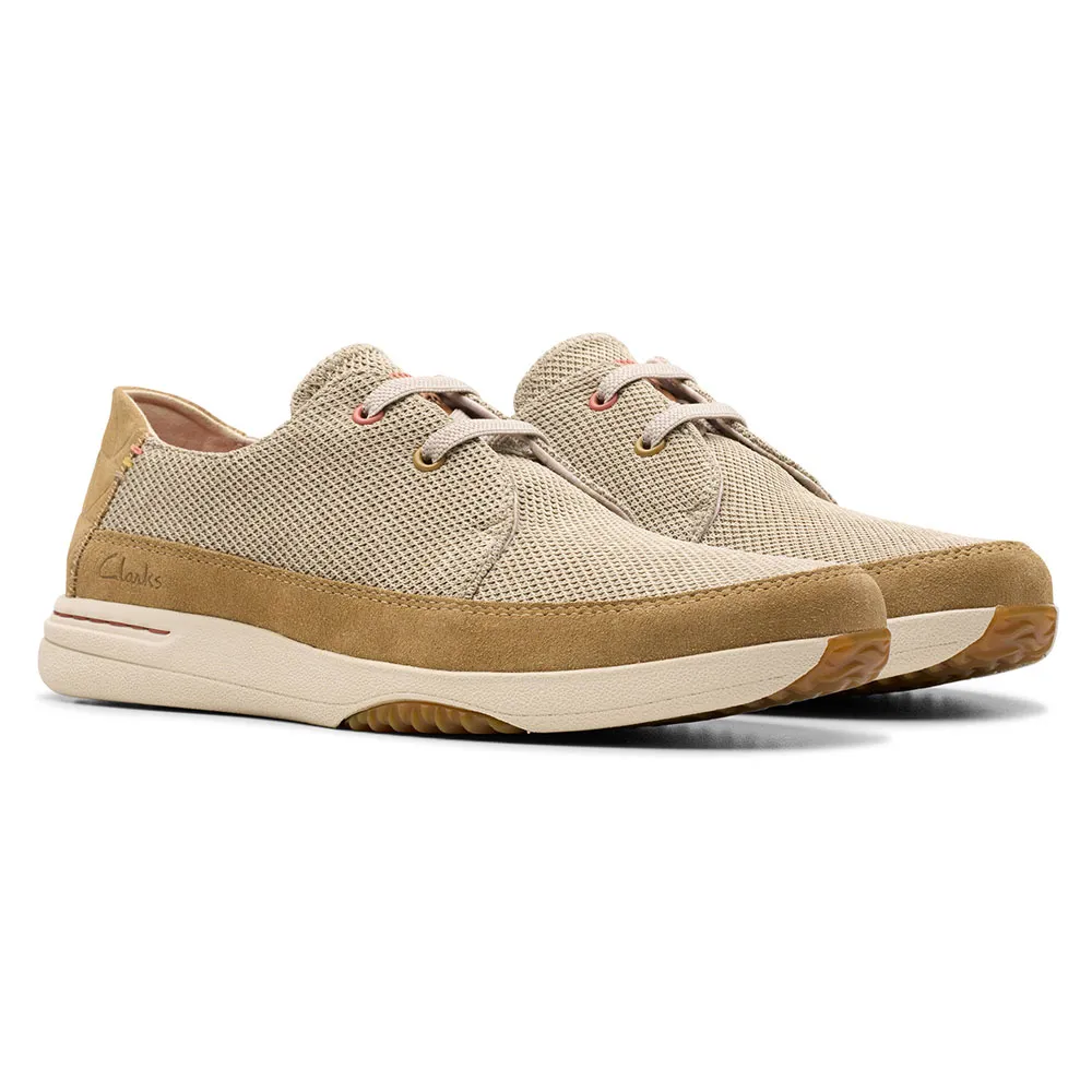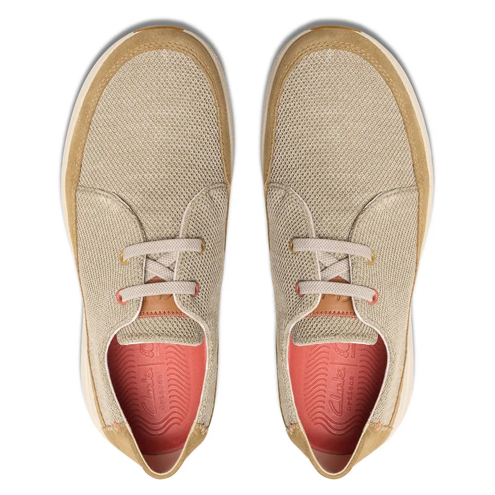 - Дышащий вязаный верх песочного цвета.
