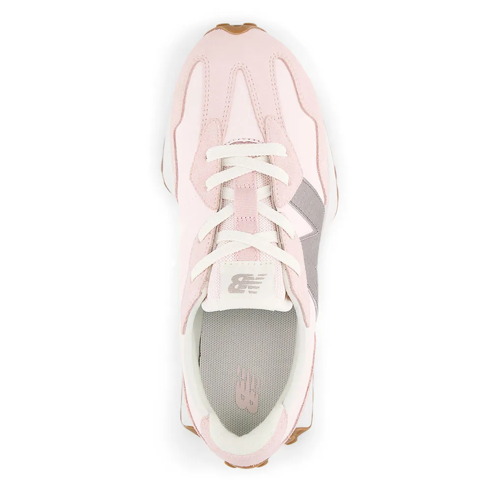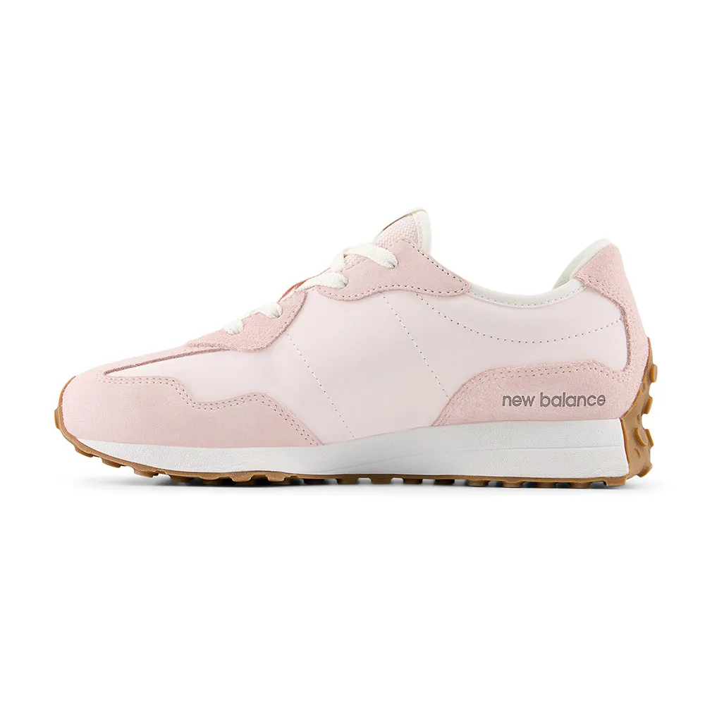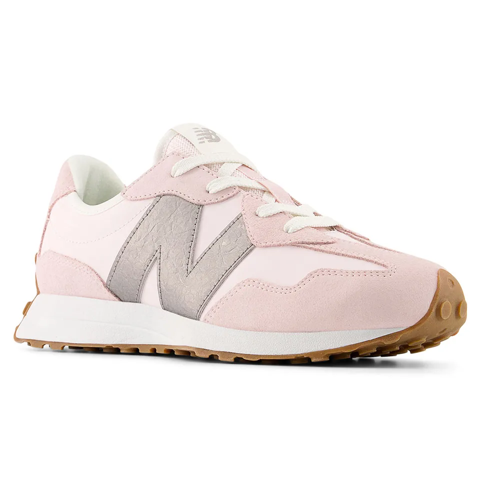 Детские кроссовки 327 от New Balance, украшенные увеличенным логотипом N, - это смелый взгляд на классический стиль.