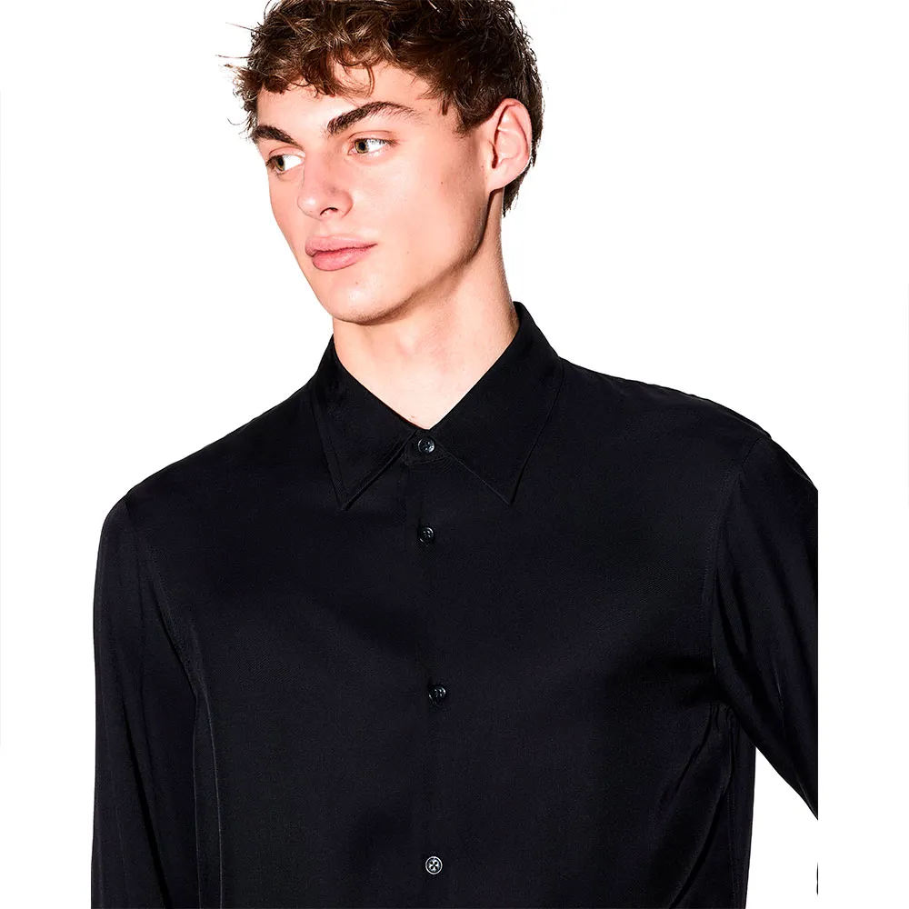 Простая и минималистичная рубашка с длинными рукавами, стандартного кроя и итальянским воротником.