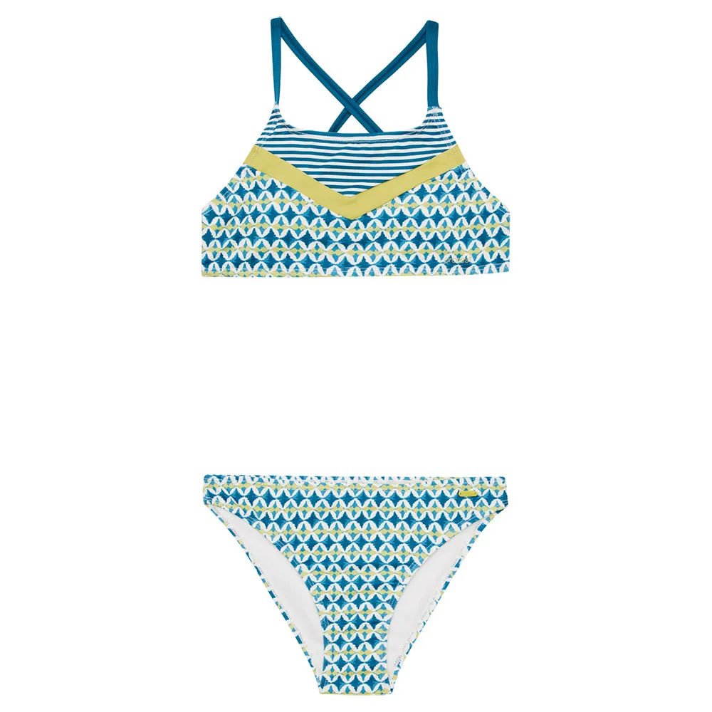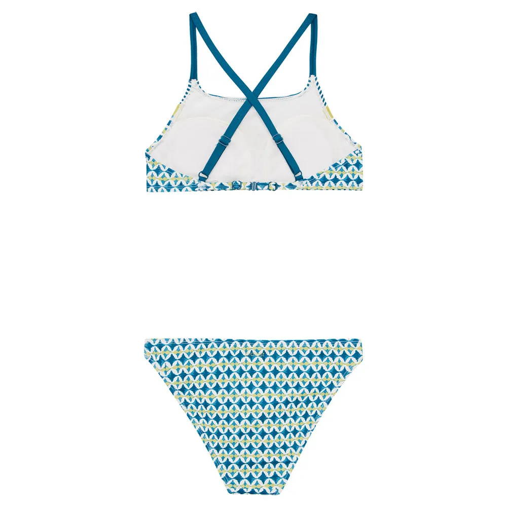 Изготовленное из переработанных материалов, оно имеет бюстгальтер-топ и надежную застежку-клипсу, идеально подходящую для активных пляжных дней.