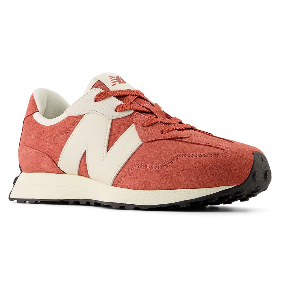 Детские кроссовки 327 от New Balance, украшенные увеличенным логотипом N, - это смелый взгляд на классический стиль.