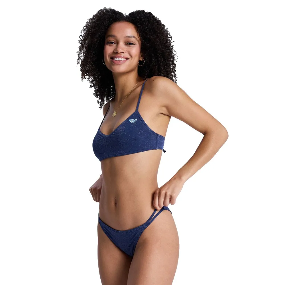 Ткань верха: Мягкая, переработанная, прочная и эластичная ребристая ткань с люрексом, Форма: Бралетт, Вставки: Съемные, Бретели: Регулируемые завязки, Застежка: Фиксированная, Размер чашки: Лучше всего подходит для размеров чашек A/B/C, Вышитый логотип ROXY, Ткань низа: Мягкая, переработанная, прочная и эластичная ребристая ткань с люрексом, Форма: Мини-бикини, Посадка: Низкая, Вышитый логотип ROXY.