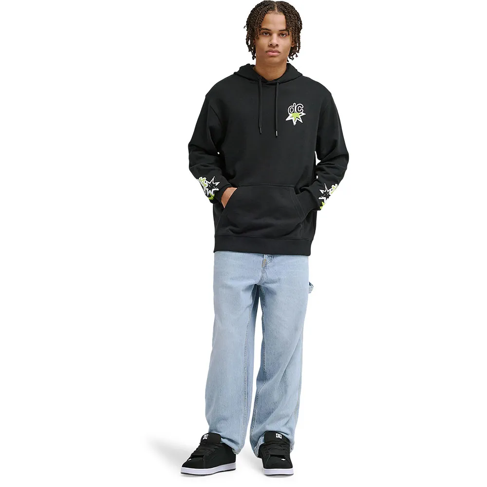 Ткань: хлопок средней плотности, переработанный хлопок, переработанный полиэстер, замшевая французская махровая ткань с частичной начесом с обратной стороны (280 г/м2), Крой: классический, удобный стандартный крой, Карманы: карман-кенгуру, пластизольный принт на левой стороне груди, рукавах и спине, тесьма в елочку на воротнике сзади, металлические люверсы и плоские шнурки с металлическими наконечниками с логотипом бренда.