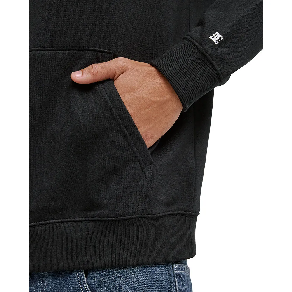 Ткань: Легкий хлопок, переработанный хлопок, переработанный полиэстер с начесом (230 г/м2), Крой: Классический, удобный стандартный крой, Карманы: Карман-кенгуру, Трикотажные манжеты и нижний край, Трикотажная тесьма на воротнике сзади, Нашивка DC на груди, Небольшой логотип DC внизу левого рукава, Петли для пуговиц и круглые шнурки с фирменными металлическими наконечниками.