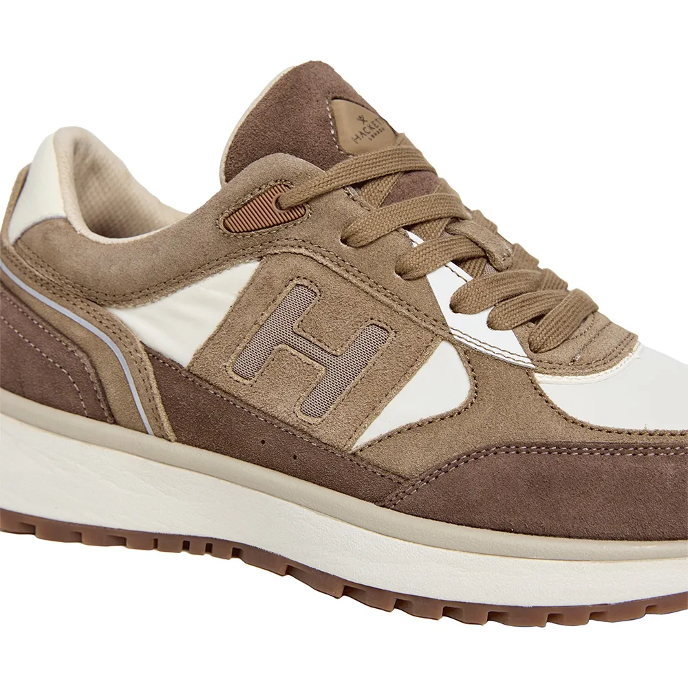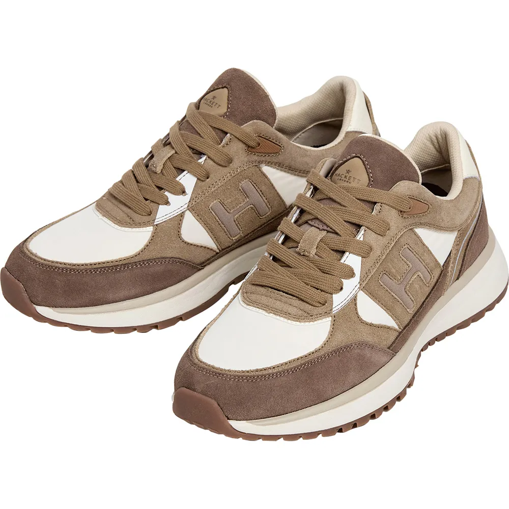 Классические кроссовки Otto Run из коровьей замши, с монограммой «H» и напечатанным логотипом Hackett на боковой части, декоративной строчкой на воротнике и боковых панелях, съемной стелькой, удобной промежуточной подошвой из ЭВА и резиновой подошвой.