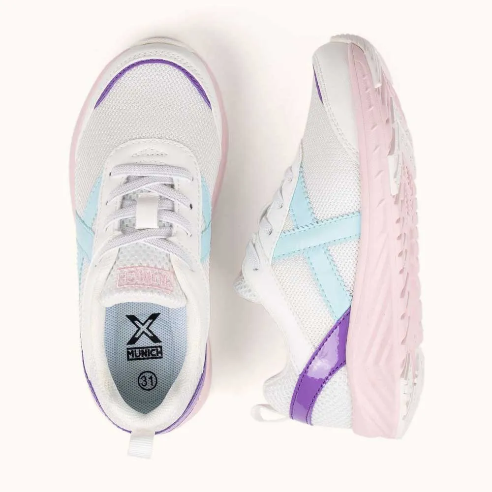 Эти детские кроссовки сочетают в себе яркий и функциональный дизайн, идеально подходящий для повседневной жизни малышей. Они имеют дышащую белую сетчатую основу, усиленную синтетическими вставками, и культовый логотип в виде буквы X мягкого оттенка. Пастельная подошва не только создает очаровательный эстетический контраст, но и гарантирует комфортную амортизацию для школьных занятий или игр в парке. Благодаря шнуровке и задней петле для удобного надевания, кроссовки надежно фиксируются и легко надеваются, что делает их идеальной обувью как для занятий спортом, так и для сочетания с повседневной одеждой во время семейных прогулок.
