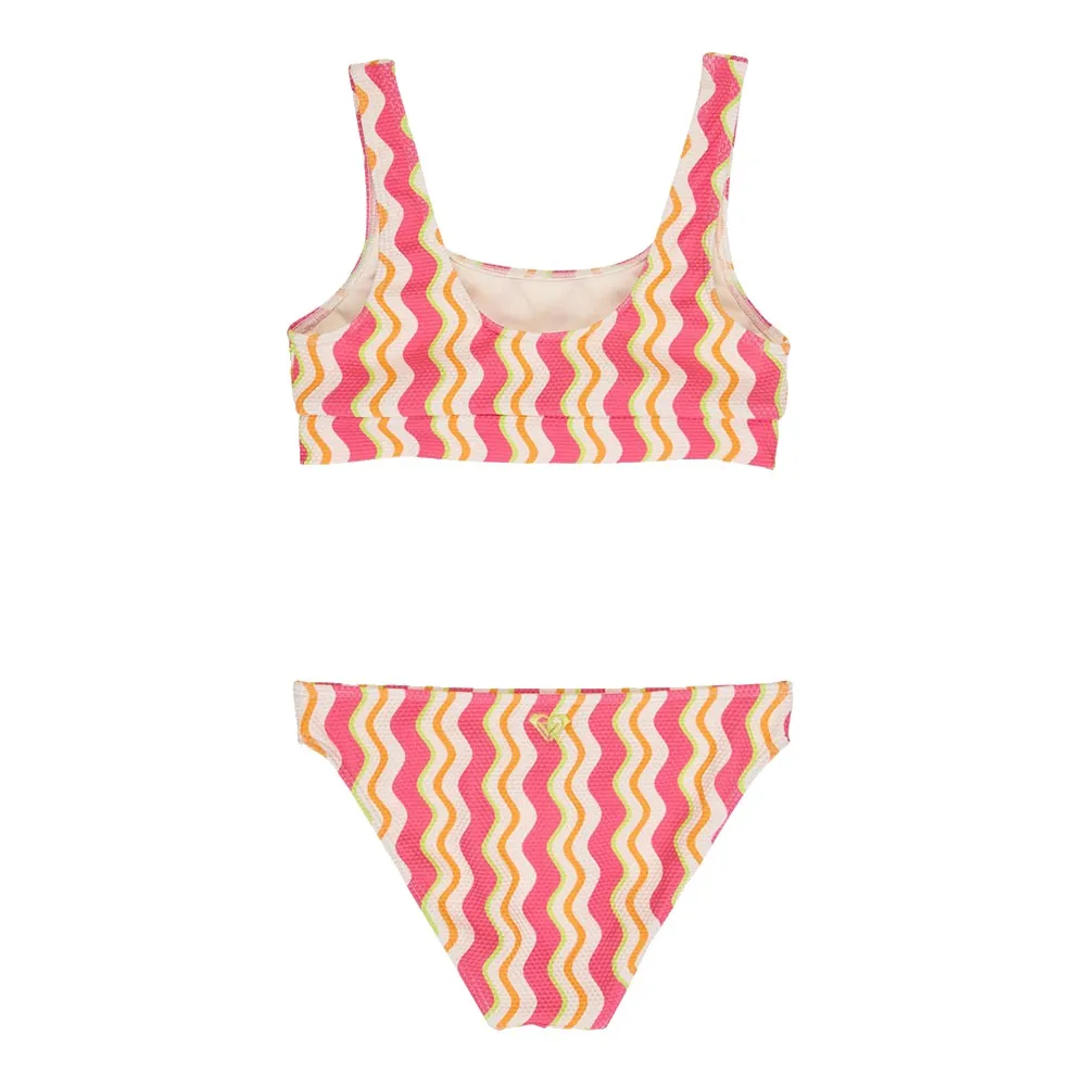 Ткань: Мягкая, переработанная, износостойкая и эластичная ткань пике, Форма: Комплект с укороченным топом, Вставки: Съемные (для детей 12-16 лет), Бретели: Фиксированные, Застежка: Фиксированная, Расположение рисунка может отличаться на разных бикини, Вышитый логотип ROXY, Имитация узла спереди.