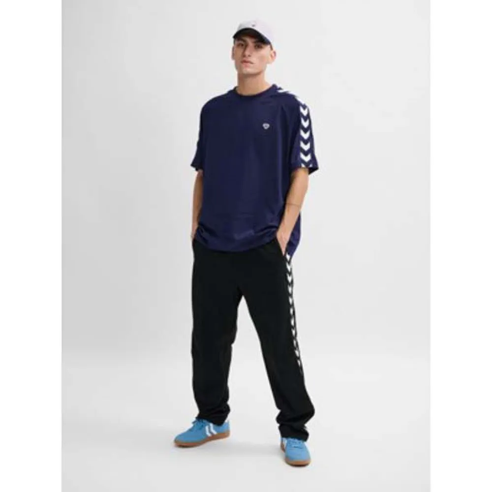 Брюки hmlARCHIVE REGULAR POLY PANTS украшены фирменной шевронной лентой по бокам каждой штанины и боковыми карманами на бедрах.
