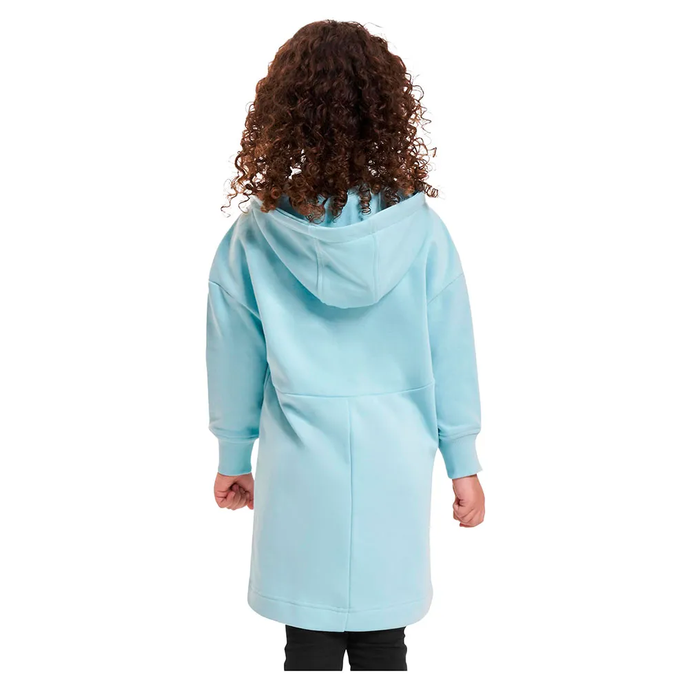 Стильное мини-платье для девочек, выполненное в стиле худи, излучает прохладу. Оно имеет большой капюшон на шнурке, украшенный металлическими наконечниками, и, конечно же, широкие, удобные манжеты на рукавах и подоле. Платье стандартного размера имеет два практичных боковых кармана. Разделительные швы на спине придают ему изысканный вид. Платье-худи также заслуживает похвалы за мягкий органический махровый материал. Это также подтверждается органической маркировкой и внешней этикеткой-флажком на боковом шве.