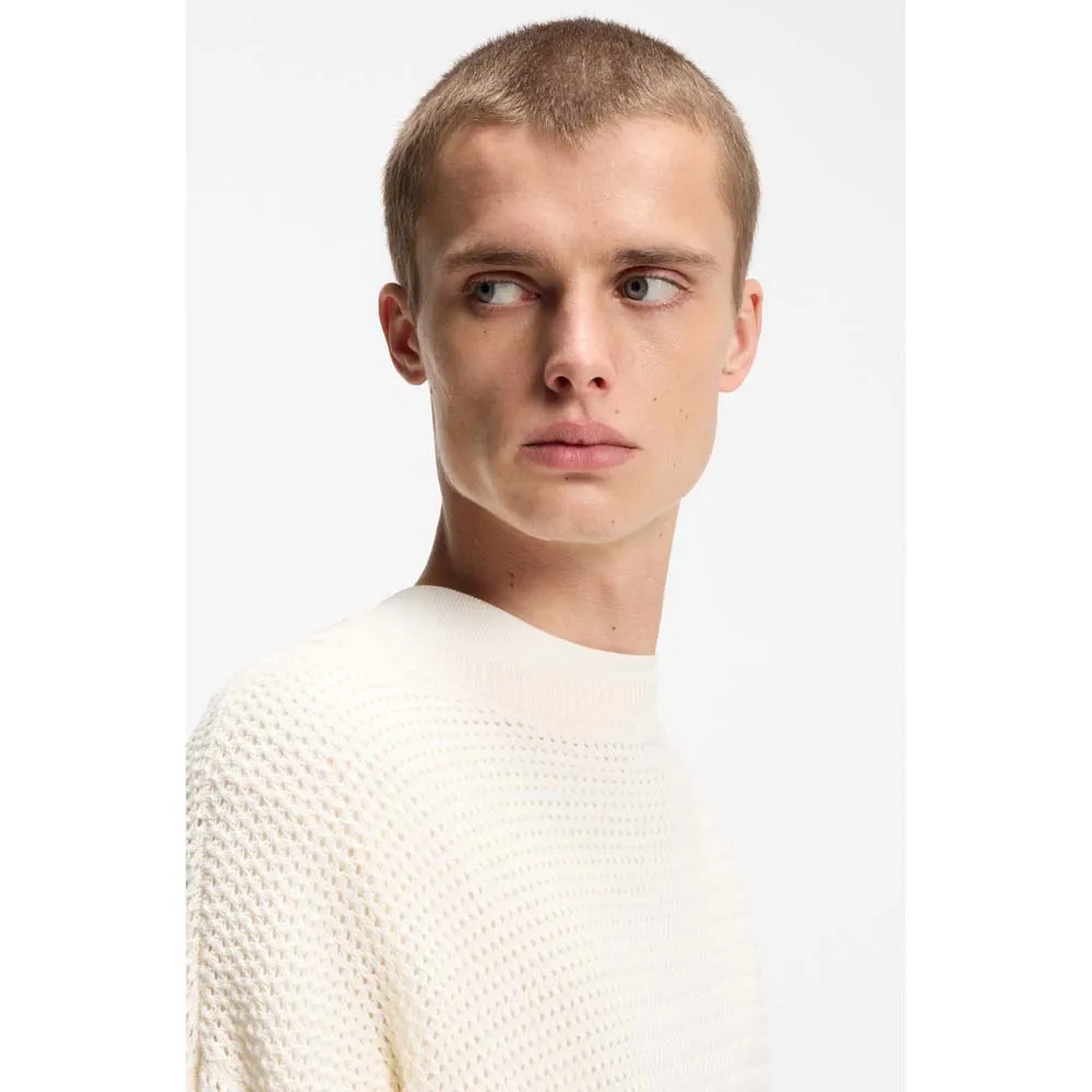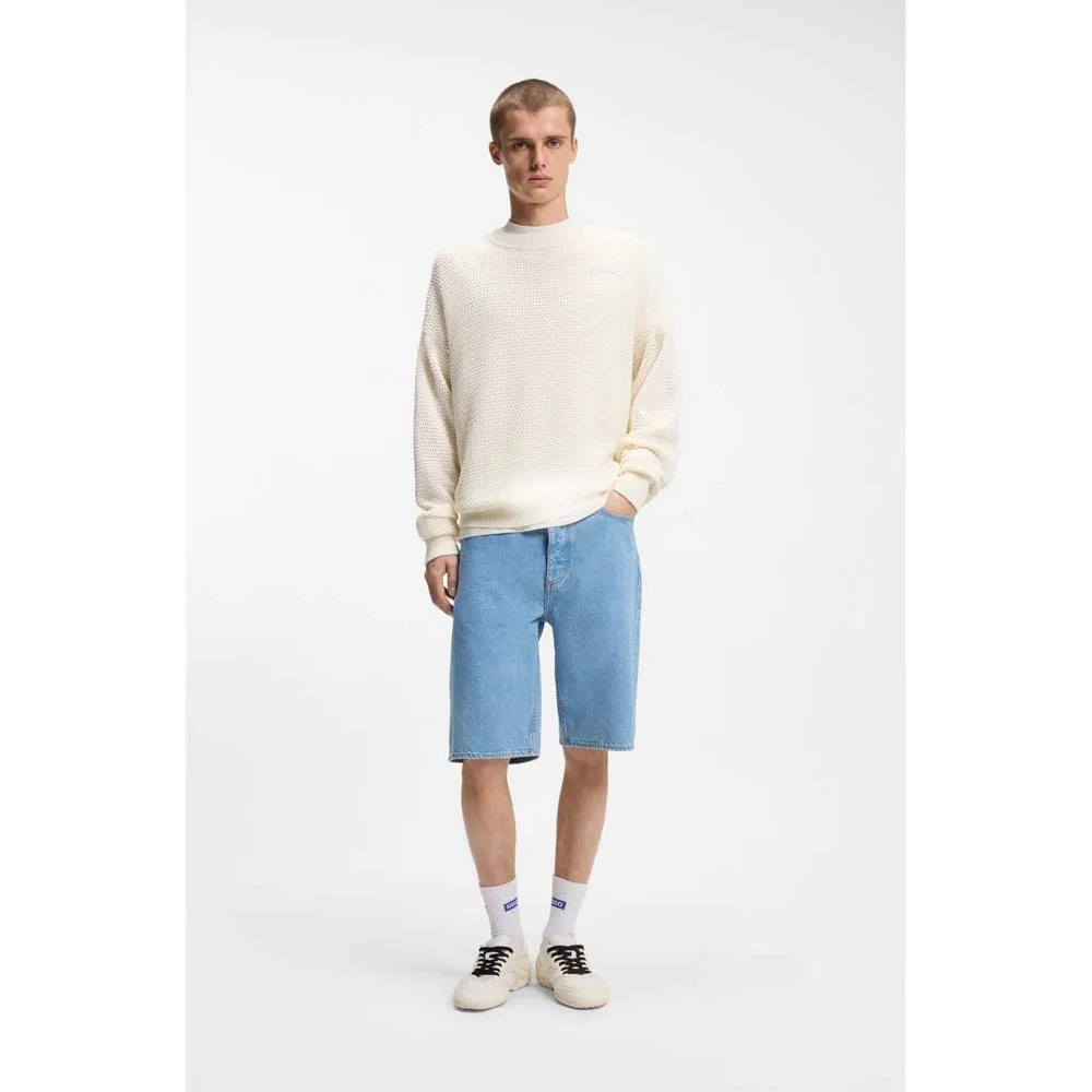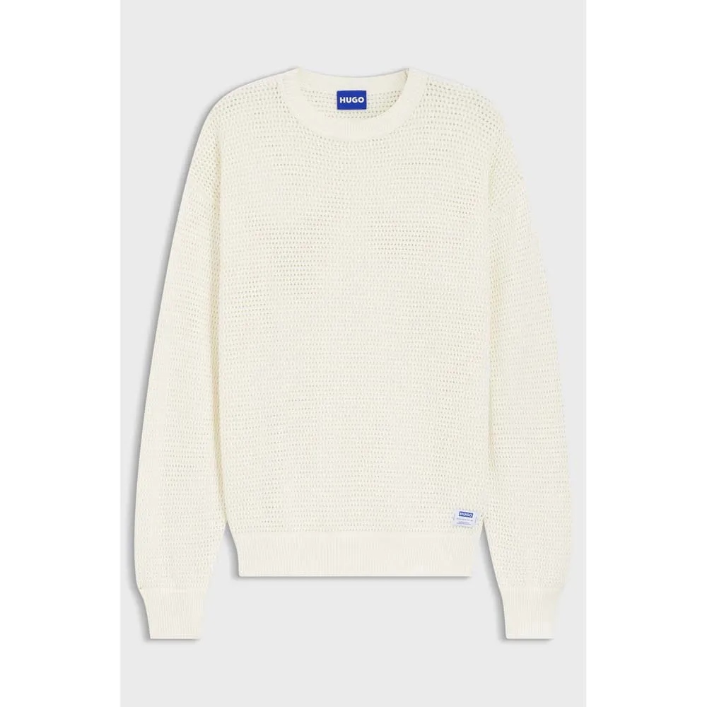 Этот современный мужской свитер HUGO свободного кроя связан из хлопка с воздушной перфорированной структурой. Логотип на подоле. Этот продукт содержит не менее 80% высококачественного сырья. Этот продукт частично изготовлен из органического хлопка. Наши стандарты органического производства не допускают использования синтетических удобрений, пестицидов или генетически модифицированных семян.
