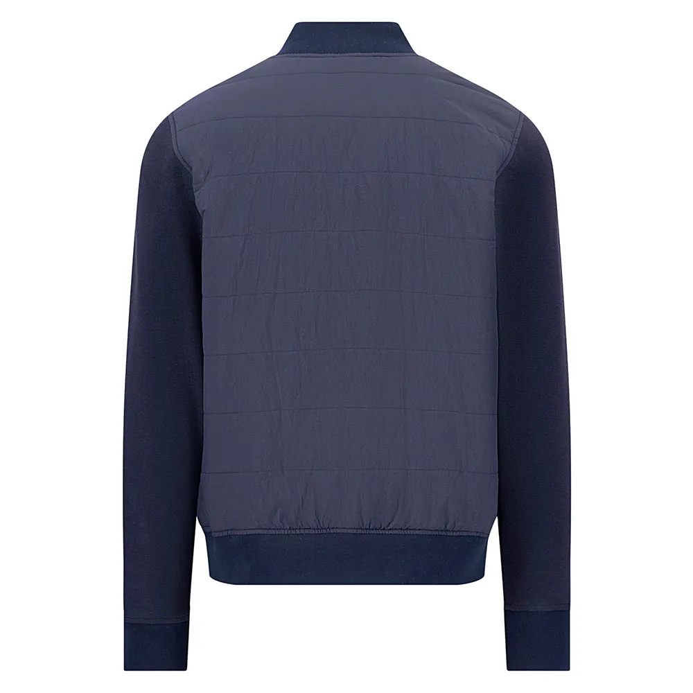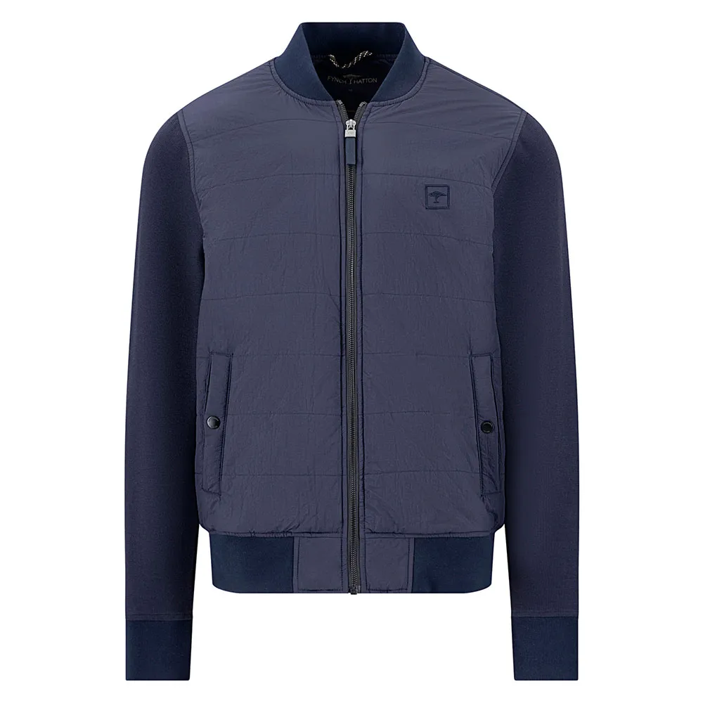 Сочетание гладкой стеганой ткани и структурированных трикотажных рукавов делает эту куртку-бомбер спортивной, современной и функциональной вещью, привлекающей внимание. Тканый нейлон придает передней части легкость и прочность, а мягкие рукава из смеси полиэстера и хлопка обеспечивают комфорт при ношении. Ребристый воротник, низ и манжеты подчеркивают повседневный стиль, а едва заметный логотип FYNCH-HATTON на груди добавляет фирменный штрих. Идеальная для переменчивой погоды, эта куртка станет надежным спутником в вашей повседневной жизни.