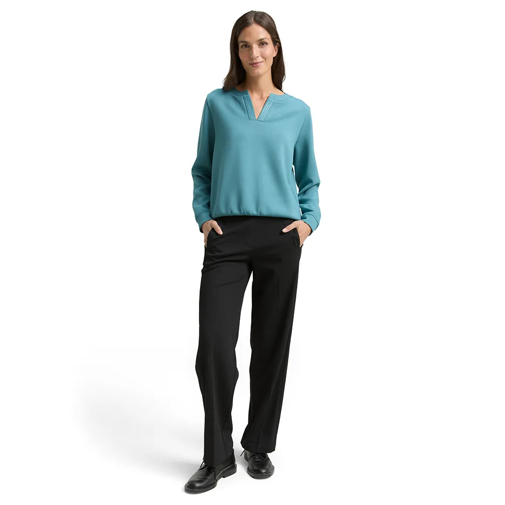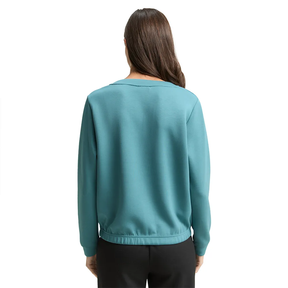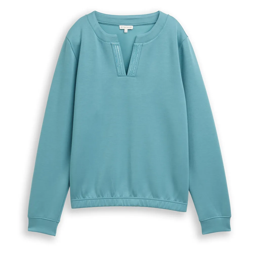Толстовка со стразами на вырезе и эластичным поясом.