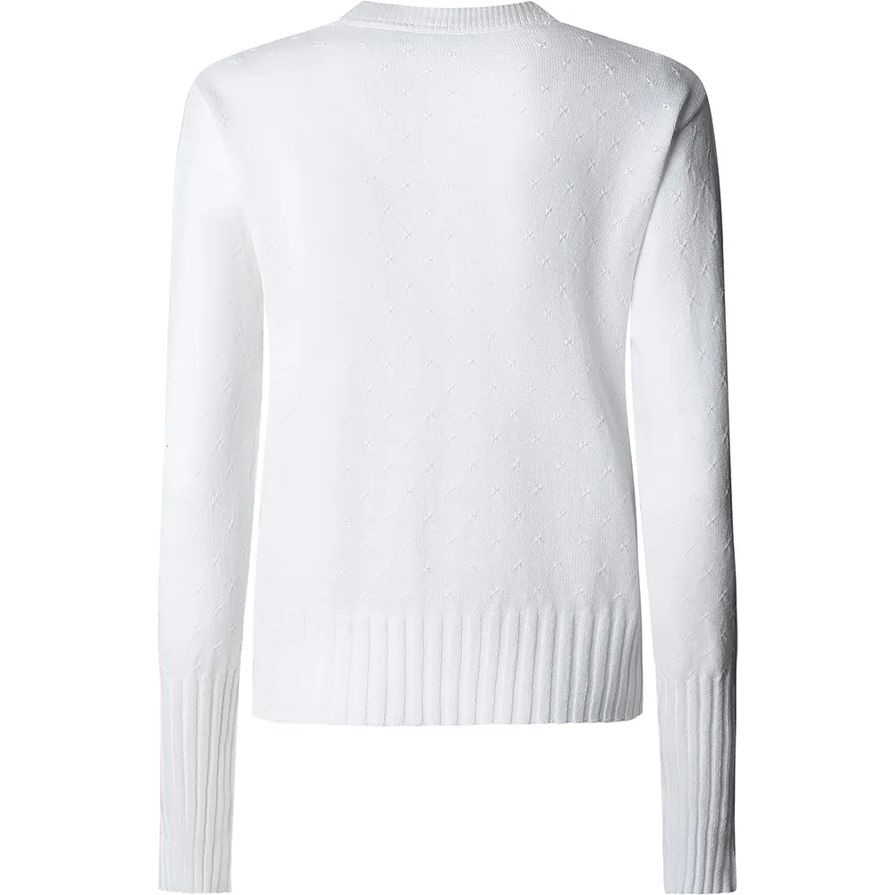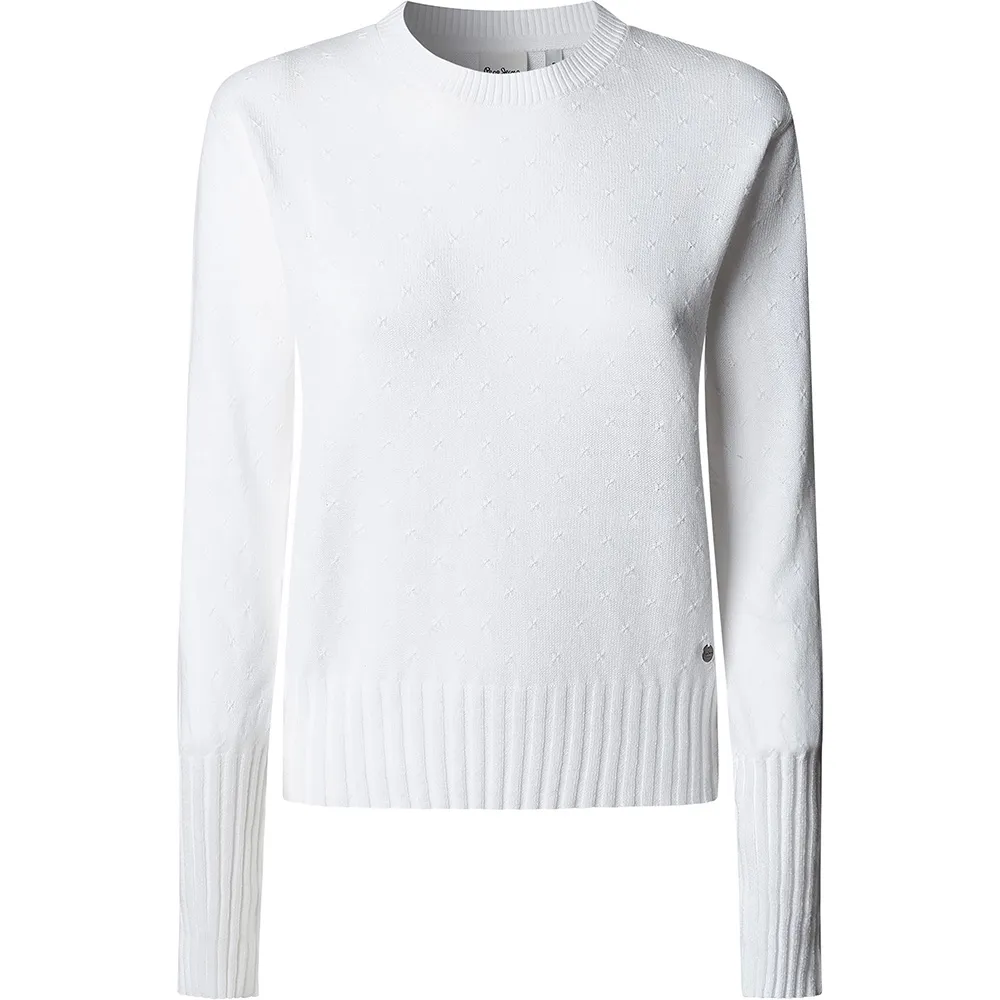 Небольшая ажурная блузка с круглым вырезом и длинными рукавами, резинкой на манжетах, подоле и воротнике.