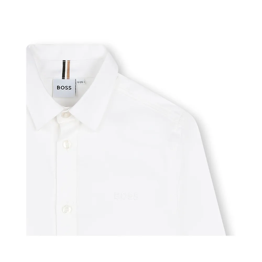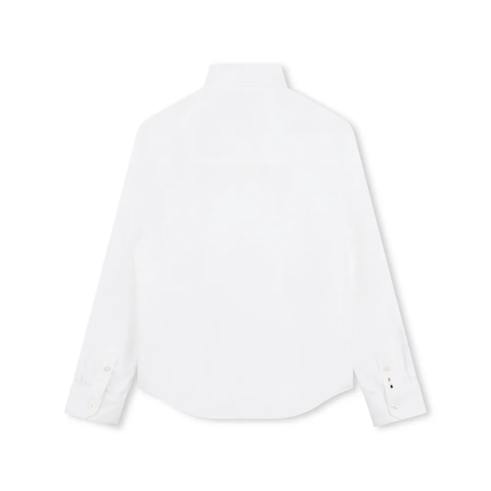 Эта детская рубашка BOSS Kidswear, изготовленная из хлопка с оксфордским переплетением, легко сочетается как с повседневной, так и с нарядной одеждой. Вышитый логотип на левой стороне груди. Прямой крой.