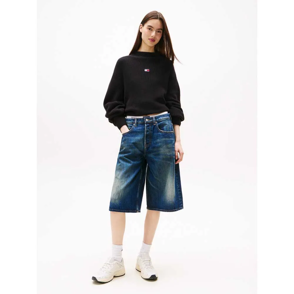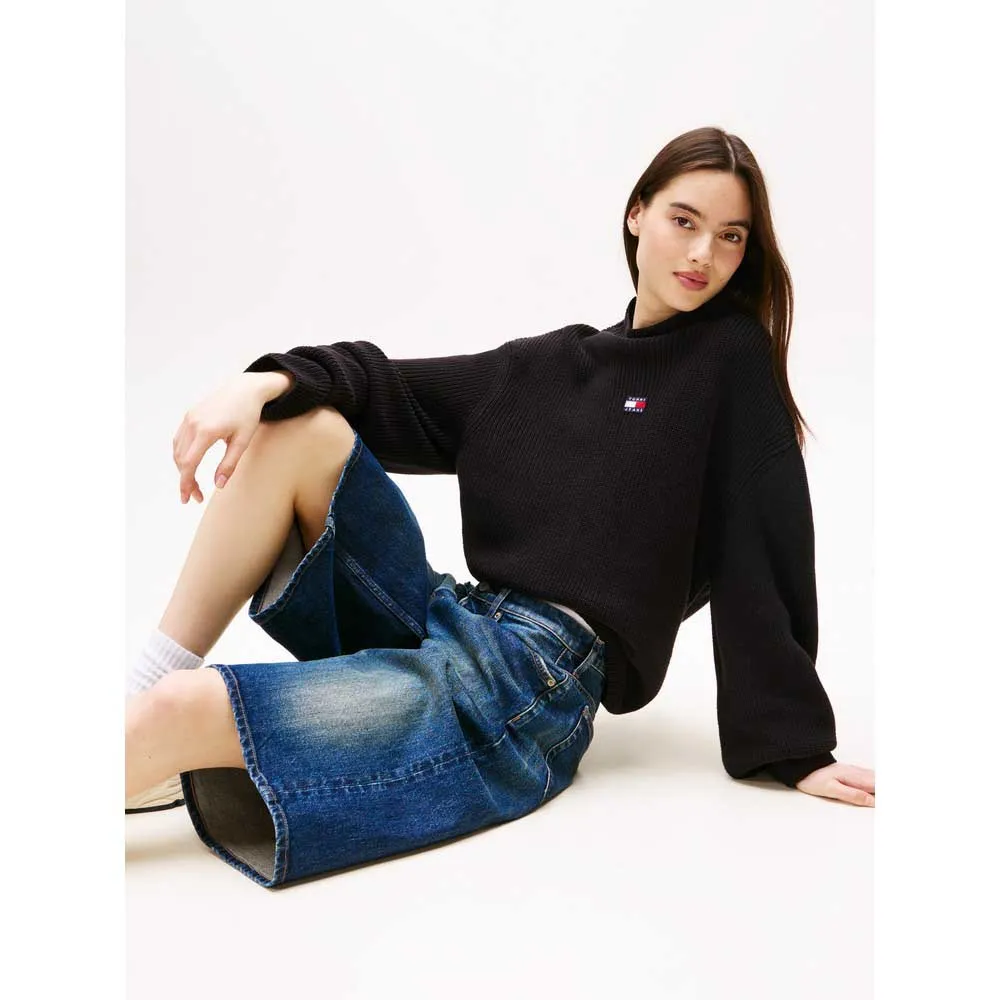 - Вышитая эмблема для культового стиля Tommy Jeans.