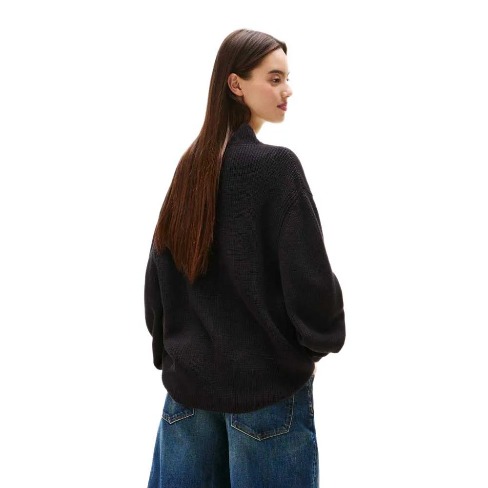 Облегающий свитер с высоким воротником и вышитой эмблемой, обеспечивающий уютную текстуру и ненавязчивый логотип для стильных повседневных образов.