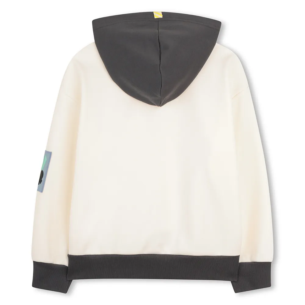 Худи из французского махрового трикотажа с сотовой текстурой, ребристыми манжетами и низом, 1 передним карманом, нашивкой на рукаве. Состав: 96% полиэстер, 4% эластан - Отделка: 95% хлопок, 5% эластан - Подкладка: 100% хлопок.
