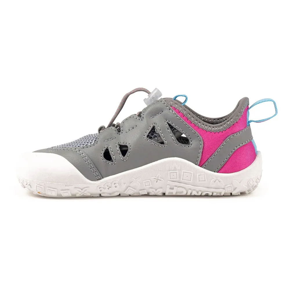 Эти детские кроссовки в гибридном стиле сочетают в себе технический серый цвет с яркими акцентами цвета фуксии и деталями на петлях для удобного надевания. Модель Barefoot обеспечивает естественную и универсальную походку, отличается спортивным стилем, имеет колодку, повторяющую естественную форму пальцев ног, и минимальную толщину промежуточной подошвы, обеспечивающую более плотный контакт с землей и отличную гибкость. Это идеальная обувь для игр, бега на детской площадке или любой другой деятельности, требующей легкой и динамичной поддержки. Уход: эту модель можно стирать в машине, что позволяет быстро удалять загрязнения и сохранять яркость цветов. Эластичная шнуровка с фиксатором позволяет детям самостоятельно и надежно регулировать кроссовки.