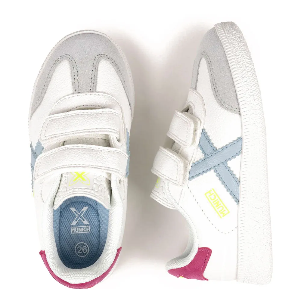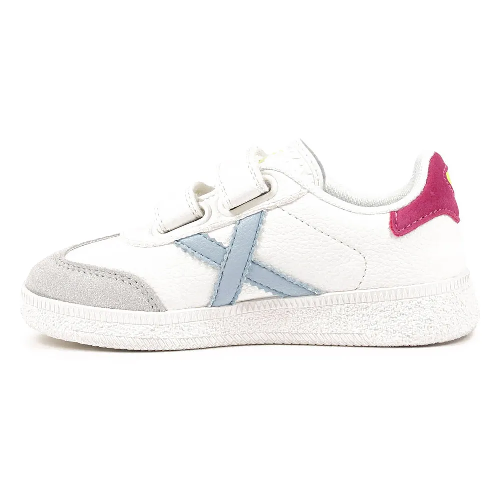 Кроссовки mini barru возрождают дух легендарной мюнхенской модели Barru, специально разработанной для маленьких ножек. Эти кроссовки выполнены в классическом белом цвете, украшены культовым логотипом «X» и ярко-розовой пяткой. Усиленный серый замшевый носок обеспечивает дополнительную прочность при повседневной ношении, а двойная застежка на липучке позволяет быстро надеть кроссовки и поощряет самостоятельность детей при одевании. Эти кроссовки идеально подходят для повседневной носки в школу, игр на детской площадке или для придания современного спортивного стиля выходным нарядам. Благодаря текстурированной резиновой подошве они обеспечивают надежное и стабильное сцепление с любой поверхностью.