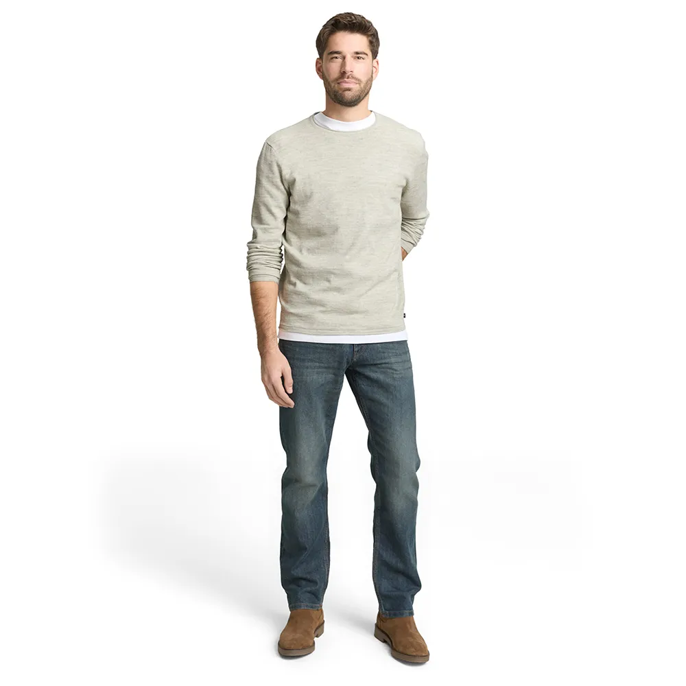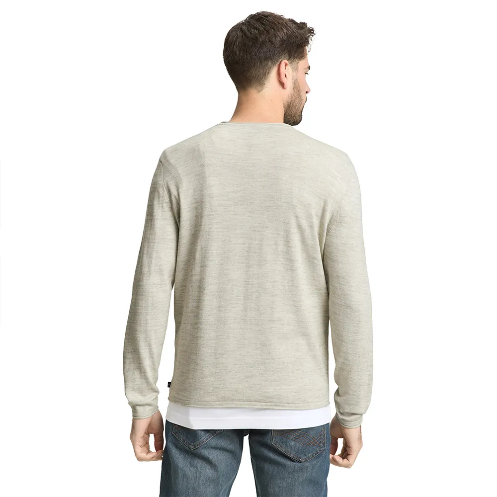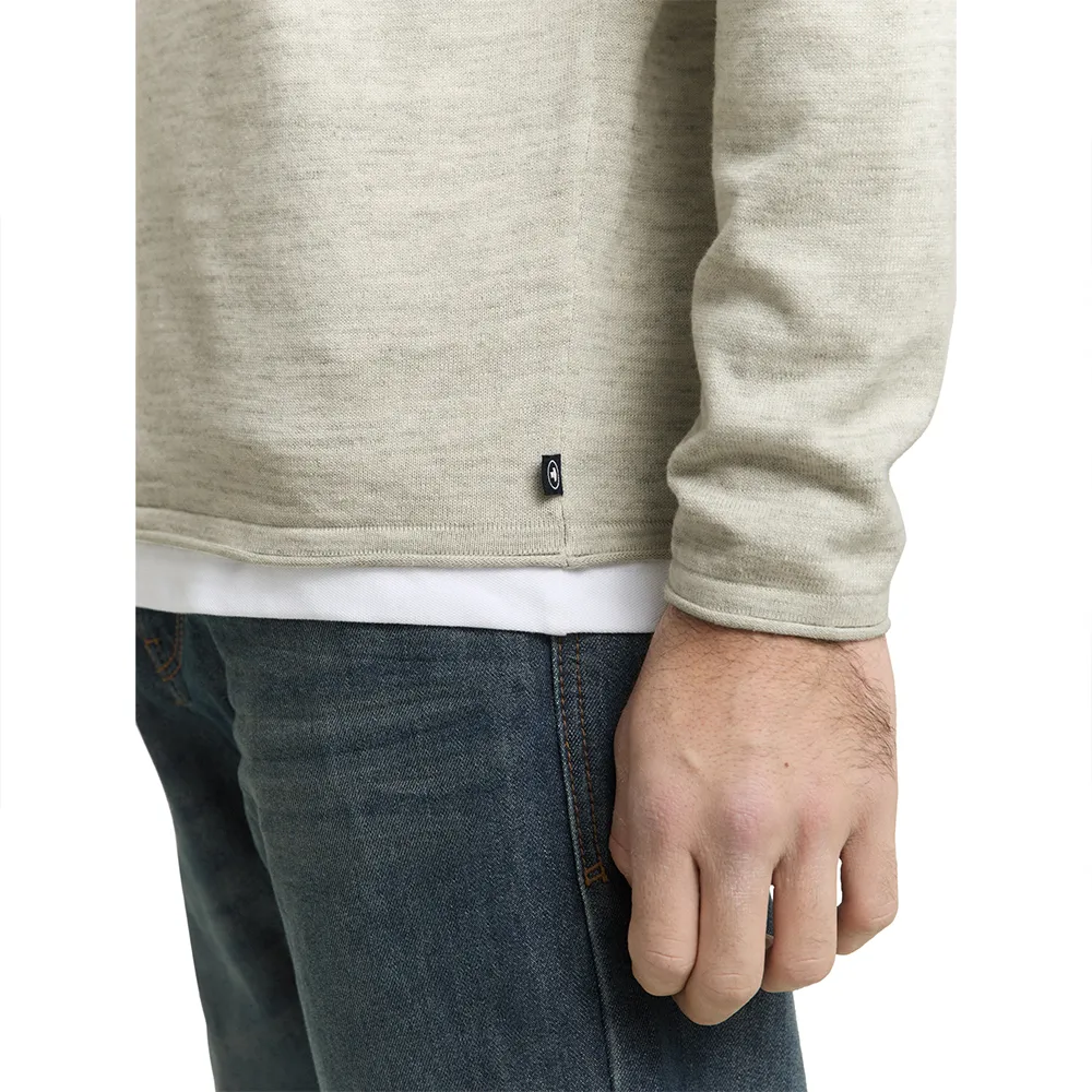 Джемпер с пятнистым узором, круглым вырезом и слегка подвернутыми краями.