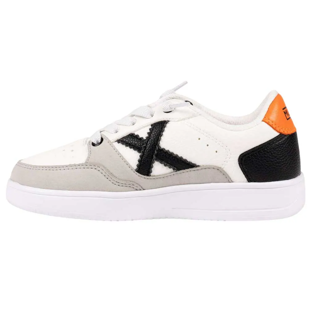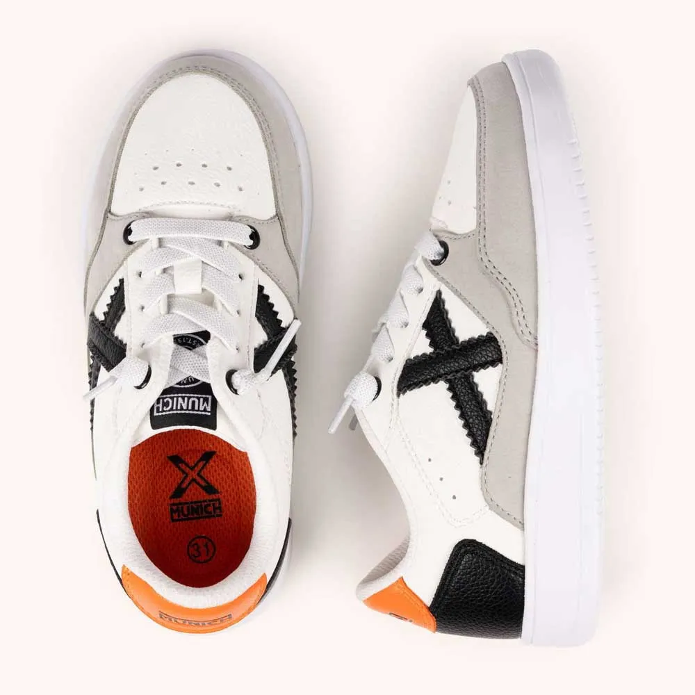 Кроссовки Munich Legit Kid 25 привносят классическую теннисную элегантность в детскую обувь благодаря современному и динамичному дизайну. Эти кроссовки выполнены в белоснежном цвете с мягкими серыми накладками и текстурированными черными акцентами, а яркий оранжевый каблук добавляет энергии. Прочная конструкция с белой резиновой подошвой обеспечивает долговечность и надежное сцепление. Эти кроссовки идеально подходят для стильных походов в школу, участия в внеклассных мероприятиях или семейных прогулок в выходные. Благодаря универсальности цветов, они прекрасно сочетаются с брюками чинос для более элегантного образа или с шортами для более расслабленного стиля.