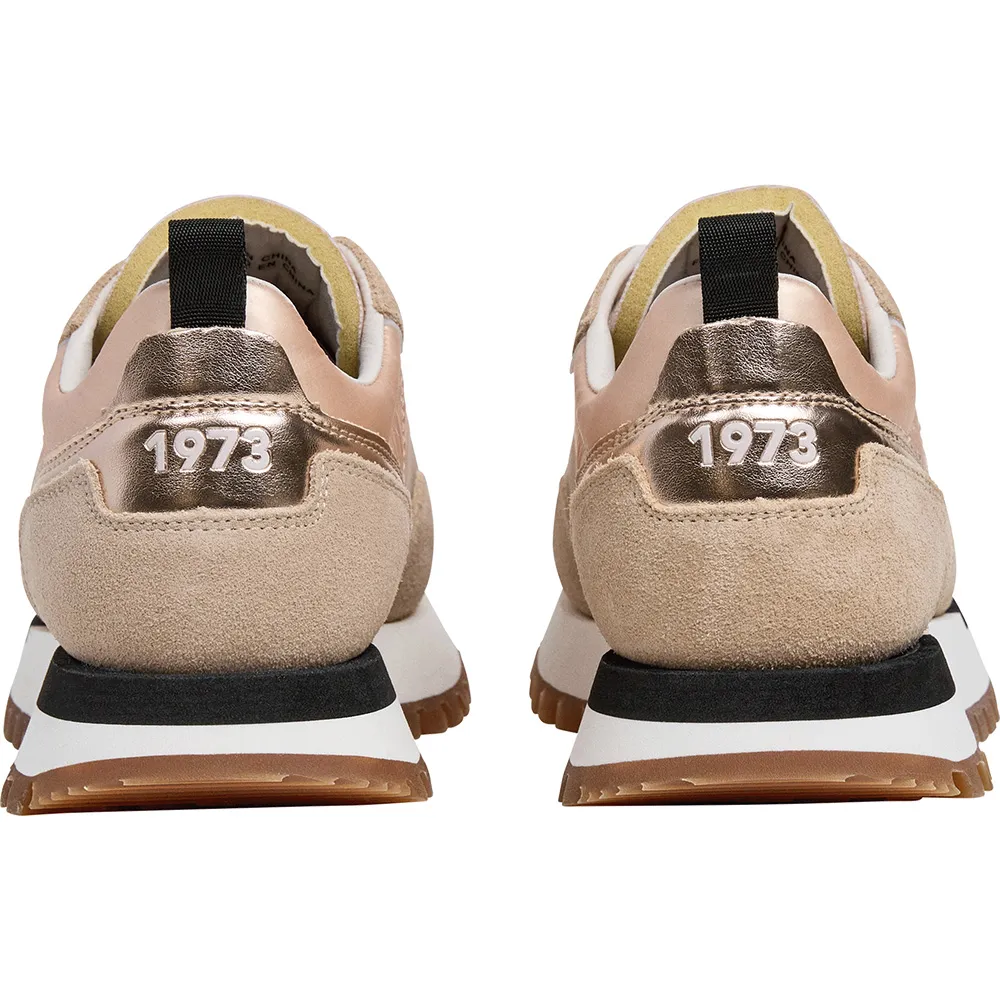 Кроссовки Ari Gala W в стиле ретро с кожаным верхом, сочетанием материалов и цветов, культовым логотипом из технического ТПУ на боковой части, декоративными люверсами, удобной и модной промежуточной подошвой из ЭВА, съемной термоформованной стелькой, резиновой подошвой карамельного цвета с шипами, протектором, задней петлей для удобного надевания, нашивкой с монограммой «P» на заднике, классическим логотипом на язычке и металлической классической логотипной пластиной сбоку.
